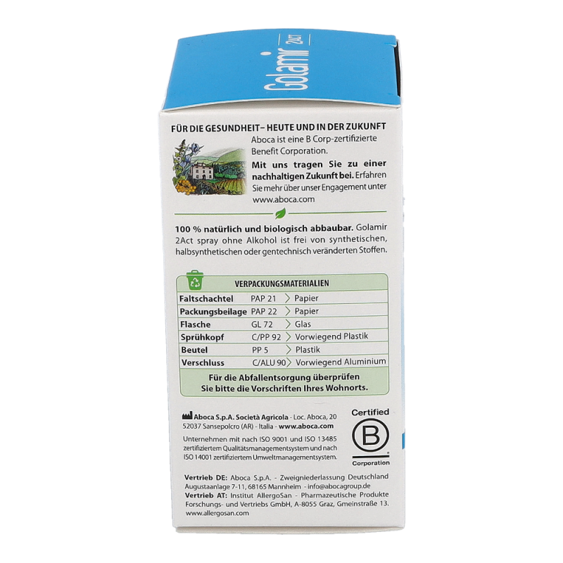 Golamir 2Act Spray ohne Alkohol ist ideal zur Behandlung von Halsschmerzen und irritativen sowie entzündlichen Zuständen im Mund- und Rachenraum, die durch Viren, Bakterien, Allergene oder äußere Reizstoffe wie Rauch, Smog oder Staub verursacht werden können. Auch bei Erkältungen, bei denen Nasensekrete den Hals reizen, ist das Spray hilfreich. Dank seines besonderen Wirkungsmechanismus kann Golamir 2Act Spray ohne Alkohol auch begleitend zu vom Arzt verordneten medikamentösen Behandlungen eingesetzt werden.