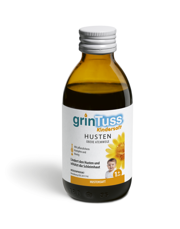 GrinTuss Kindersaft ist ein Hustensaft, der zur Linderung von Husten eingesetzt wird, der durch Reizungen der Schleimhäute in den oberen Atemwegen hervorgerufen wird. Er enthält den pflanzlichen Komplex Poliresin® und Honig. Die Formulierung ist vollständig natürlich, biologisch abbaubar und basiert auf Inhaltsstoffen aus ökologischem Anbau.