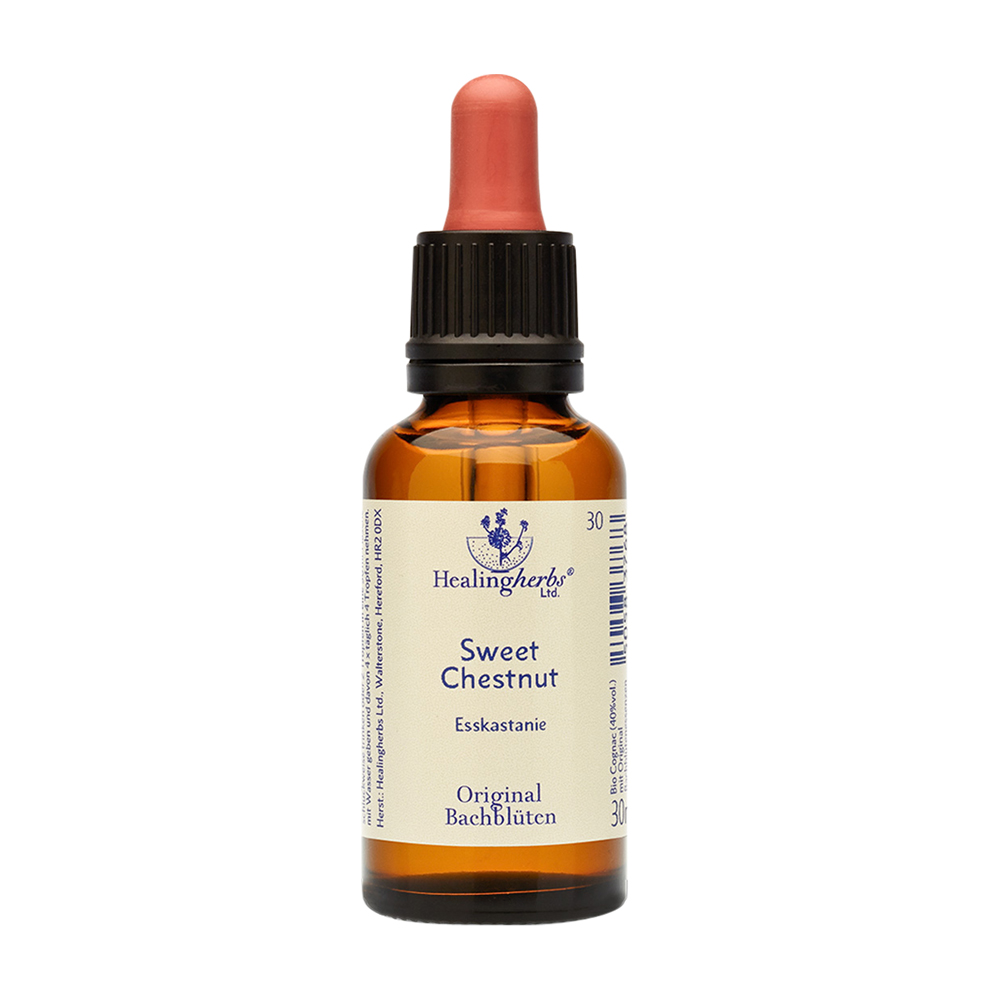 Adler Bachblüten Sweet Chestnut Tropfen 30 ml sind Teil der „Zweiten Neunzehn“ Bachblütenessenzen, die mit Gemütszuständen verwandt sind und sich auf alltägliche Situationen beziehen. Sweet Chestnut Tropfen eignen sich besonders für verzweifelte und hoffnunglose Menschen und können neben einer Behandlung bei Depression oder extremen seelischen Leiden unterstützend wirken – jetzt alle Bachblütenessenzen von Adler zu günstigen Preisen online bestellen!