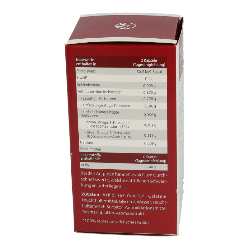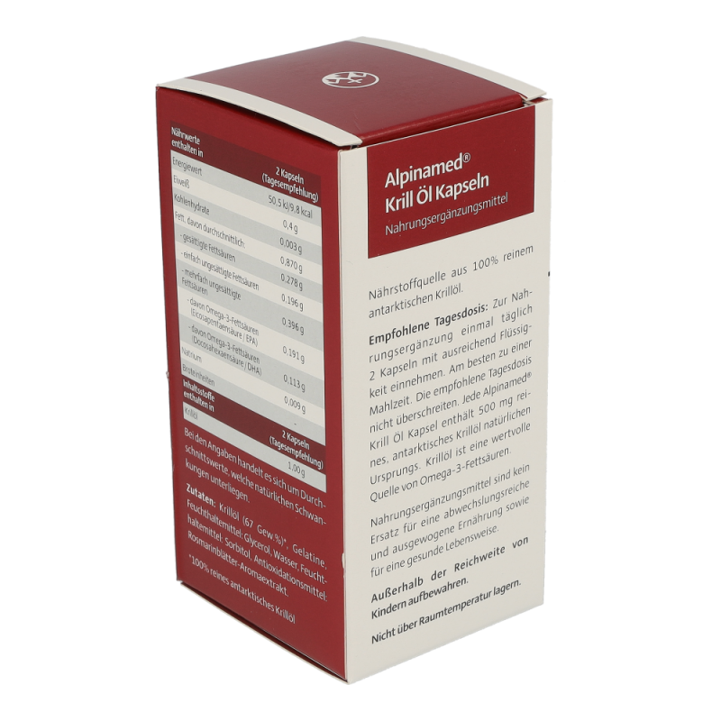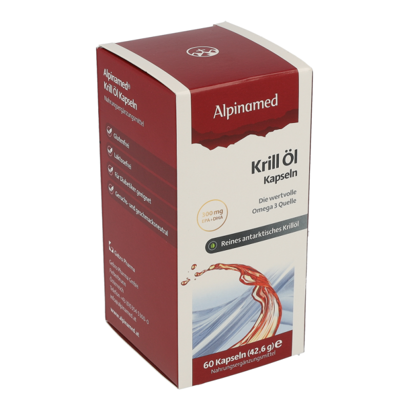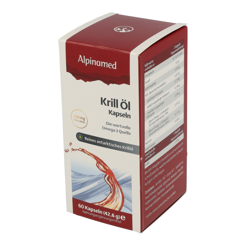 Alpinamed Krill Öl Kapseln ist ein Nahrungsergänzungsmittel aus reinem, antarktischem Krill Öl. Die Kapseln decken den Tagesbedarf an gesundheitsrelevanten Omega-3-Fettsäuren EPA und DHA einfach und effizient ab und tragen mit 300 mg EPA und DHA pro Tagesdosis zur Aufrechterhaltung einer gesunden Herzfunktion bei – Jetzt schnell und ohne Lieferkosten* stark preisgesenkt bestellen!