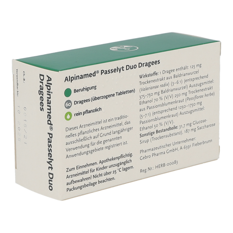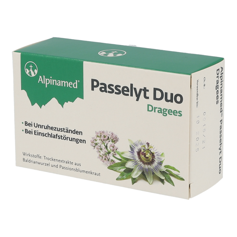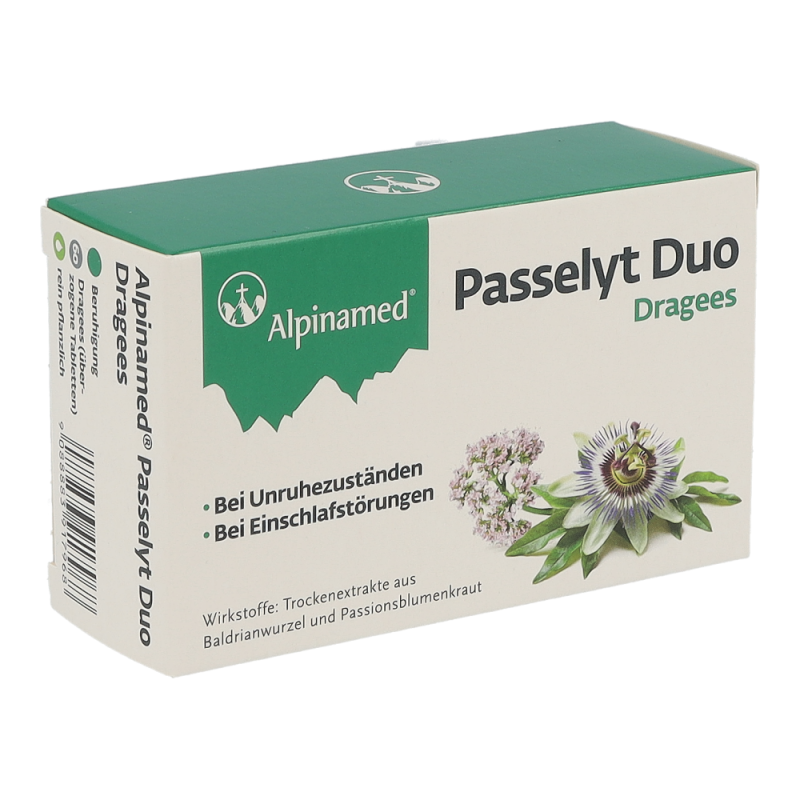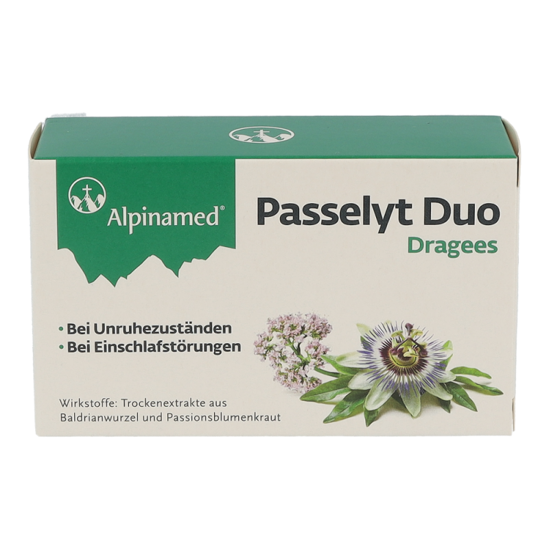 Alpinamed® Passelyt Duo Dragees sind ein pflanzliches Arzneimittel welches bei nervöser Unruhe und Schlafstörungen hilft. Diese Dragees sind in den Packungsgrößen 30 und 60 Stück erhältlich.