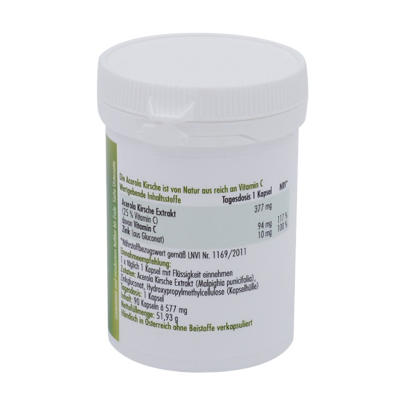 Die Acerola Kirsche, ein natürlicher Vitamin C-Quellen aus Brasilien, enthält deutlich mehr Vitamin C als Zitrusfrüchte und ist somit auch für Menschen geeignet, die Zitrusfrüchte nicht vertragen. Durch die Extraktion von getrocknetem Acerola Saft wird der Vitamin C-Gehalt zusätzlich erhöht. Das Vitamin C aus Acerola ist in einer natürlichen Kombination mit sekundären Pflanzenstoffen und Mikronährstoffen enthalten, was die antioxidative Wirkung, Verwertbarkeit, Wirkdauer und Verträglichkeit des Vitamins verbessert. Es ist wichtig, Acerola Vitamin C von synthetischem Vitamin C (Ascorbinsäure), das im Labor hergestellt wird, zu unterscheiden.