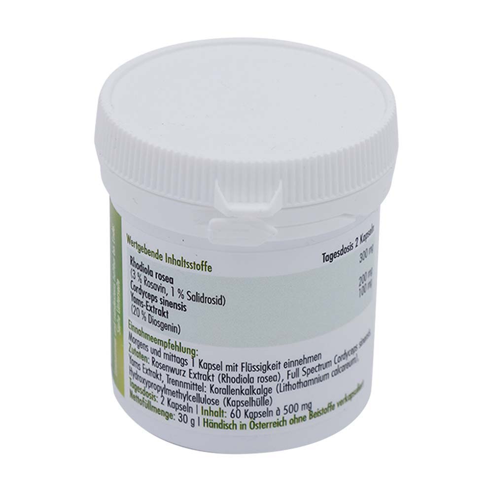 Die 3er-Mischung bei Stress: Rhodiola rosea, Cordyceps Pilz und Yams Wurzel – drei natürliche Adaptogene, die die Anpassung an Stress erleichtern, das Qi stärken und die Stimmung verbessern. Ideal für einen erfolgreichen Alltag in Beruf, Schule und Privatleben.