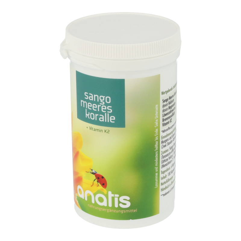 Die Sango-Koralle liefert ionisiertes, organisches Kalzium und Magnesium in einer besonders gut aufgenommenen Form. Dieses reine Naturprodukt aus den Gewässern Okinawas wird mit Kräutern wie Löwenzahn und Brennnessel kombiniert. Zusätzlich ist Vitamin K2 enthalten, das eine wertvolle Ergänzung zu Kalziumquellen darstellt.
