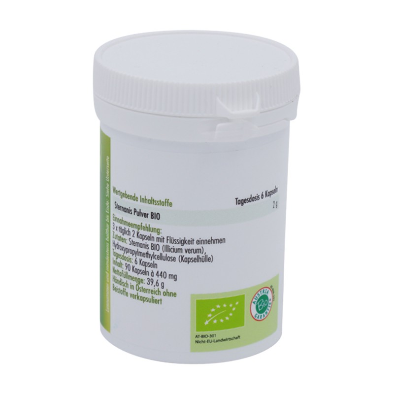 Anatis Sternanis Kapseln entfalten ihre heilende Wirkung in mehreren Bereichen. Sternanis wirkt antibakteriell, anregend, entspannend, magenstärkend, harntreibend und schleimlösend. Aufgrund seiner schleimlösenden Eigenschaften wird es häufig als Tee bei Angina, Husten und Bronchitis verwendet. Darüber hinaus lindern die Inhaltsstoffe des Sternanis auch Beschwerden im Verdauungssystem.