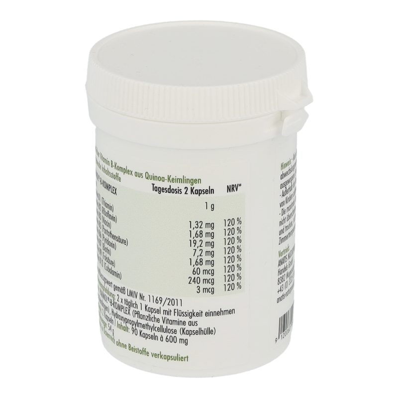 Quinoakeimlinge werden in Wasser gezogen, das mit einem Vitamin-B-Komplex angereichert ist, und integrieren die wertvollen Nährstoffe in ihre pflanzliche Struktur. Das Resultat ist eine pflanzliche Quelle für Vitamin B, die nicht nur schmackhaft, sondern auch besonders gut bioverfügbar ist, da die Pflanze die für die Aufnahme notwendigen Co-Faktoren bildet. Die vermahlenen Quinoakeimlinge werden zu Pulver verarbeitet und als natürliche Nahrungsergänzung in Kapseln abgefüllt. Der Kapselinhalt kann jedoch auch einfach in Joghurt gemischt oder über Salat gestreut werden, um den täglichen Bedarf an Vitamin B zuverlässig zu decken.