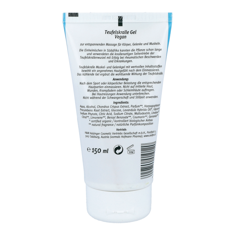 Anifer Teufelskralle Gel dient der entspannenden Massage für Körper, Gelenke und Muskeln. Nach körperlicher Belastung. Das kühlende Gel ergänzt die wohltuende Wirkung der Teufelskralle und bewirkt ein angenehmes Hautgefühl nach dem Einmassieren.