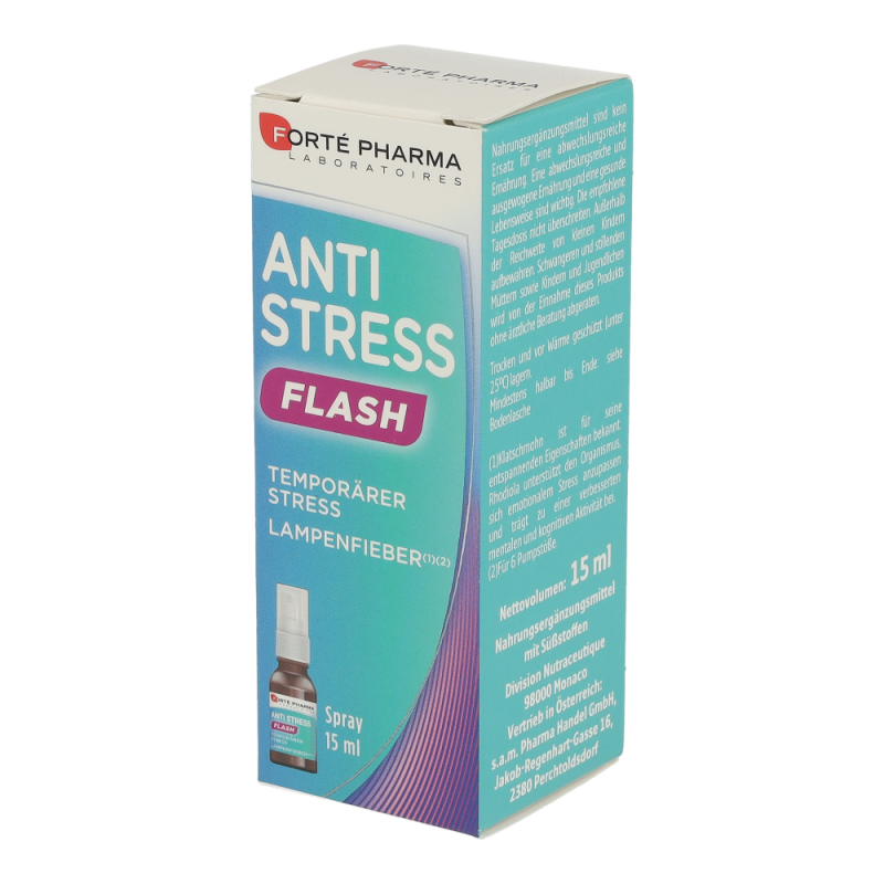 Anti Stress Flash Spray hilft bei Lampenfieber und vorübergehenden Angstzuständen. Der Spray fördert das Gedächtnis und die Konzentration in Stresssituationen und Erschöpfungszuständen.