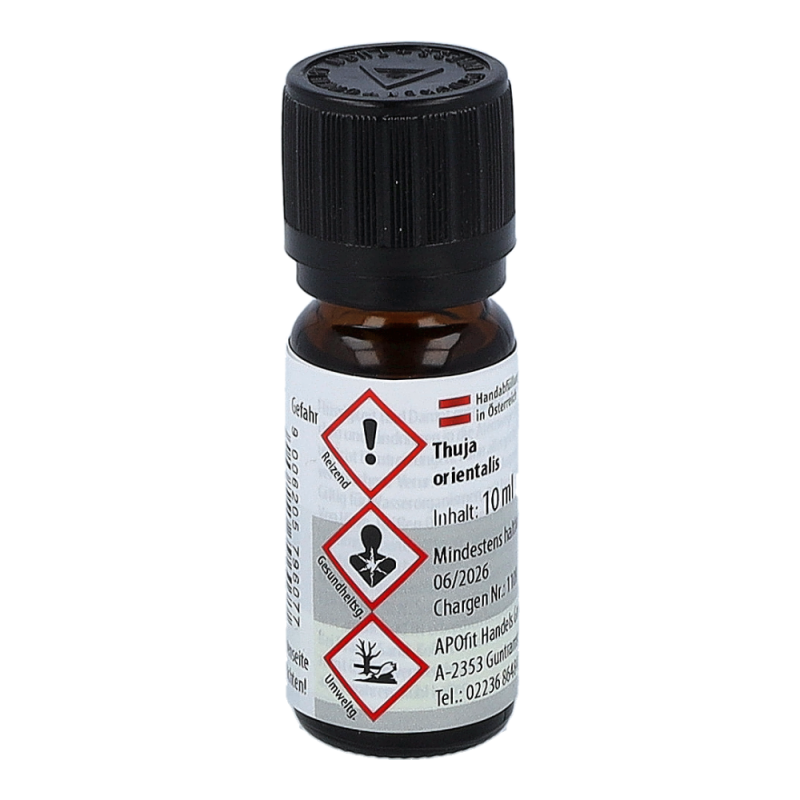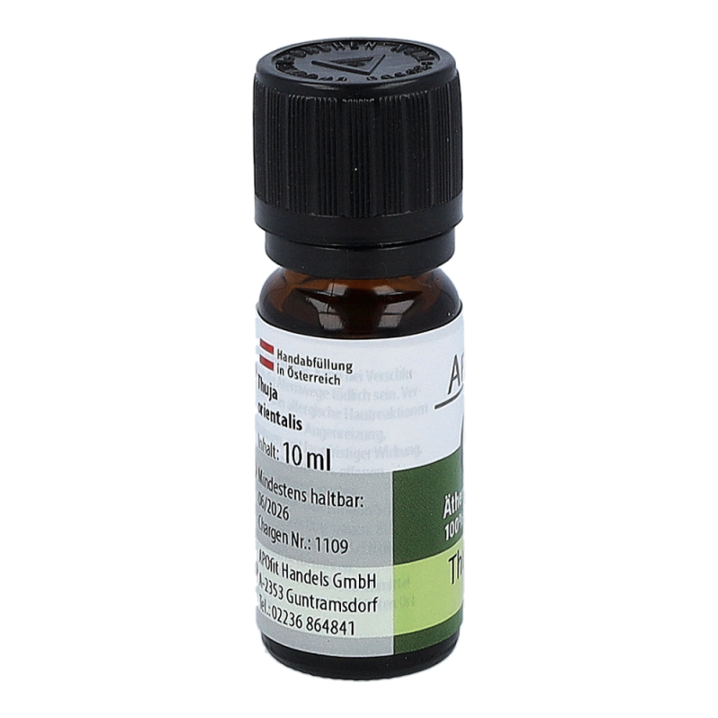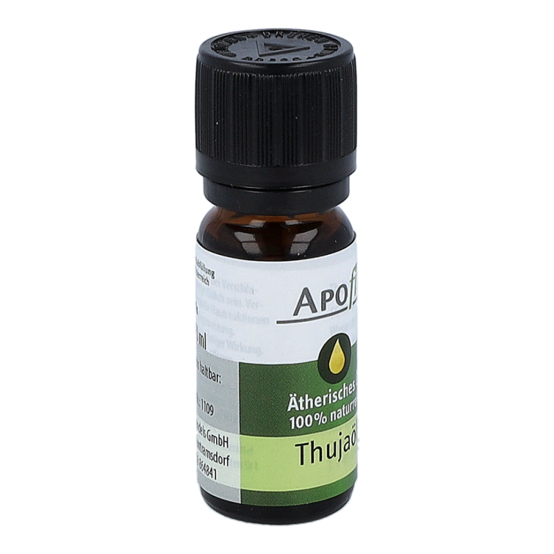Apofit Ätherisches Öl 10 ml Thuja duftet scharf, frisch, kampferähnlich. Das Öl wird verwendet bei geistiger Verwirrung, Ruhelosigkeit, Überreiztheit und Stress. Es wirkt wie ein erholsamer Urlaub oder ein tiefer traumloser Schlaf, aus dem man zu neuen Taten erfrischt und gestärkt erwacht. Nicht zur Einnahme bestimmt!.