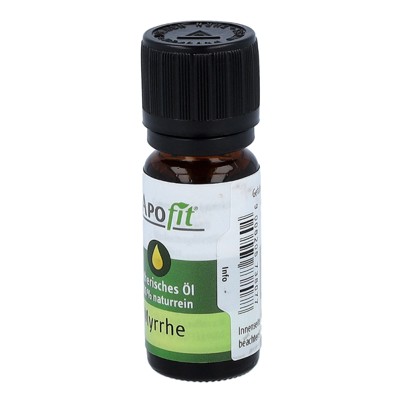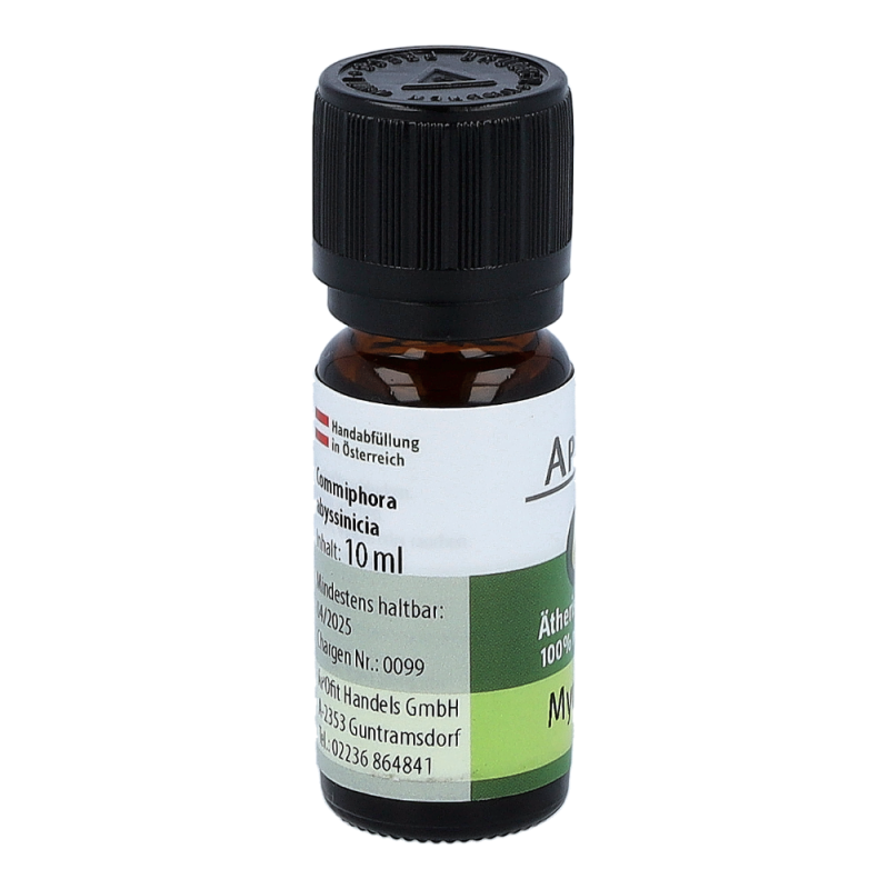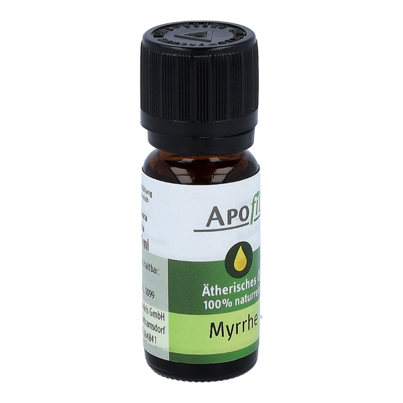 Apofit Ätherisches Öl Myrrhe wirkt desinfizierend für Mund und Rachen. Darüber hinaus erleichtert im Aromagerät vernebeltes Myrrheöl die Meditation und unterstützt die Verbindung in die geistige Welt. Es hat eine reinigende Wirkung und entspannt und beruhigt Psyche und Seele. Nicht zur Einnahme bestimmt!.