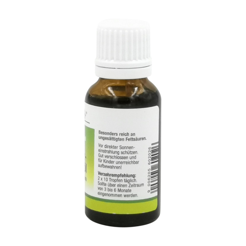 Schwarzkümmel (Nigella sativa L.) wird seit Jahrtausenden in den sonnigen Regionen des Orients angebaut und für seine besondere Würze sowie die wohltuenden pflanzlichen Wirkstoffe geschätzt. Besonders wertvoll sind die aromatischen Substanzen und Bitterstoffe, wie Thymochinon und Nigellon, die in einer täglichen Dosis von 3 mal 25 Tropfen enthalten sind.