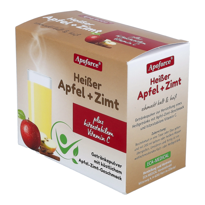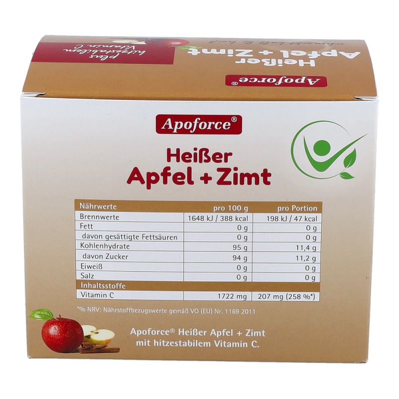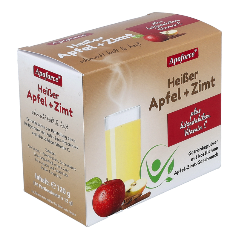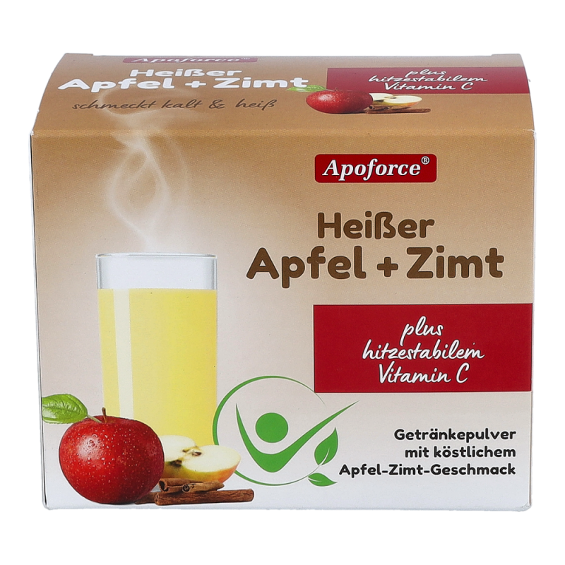 Apoforce Apfel-Zimt mit hitzestabilem Vitamin C wärmt von innen und verleiht ein angenehmes Gefühl.