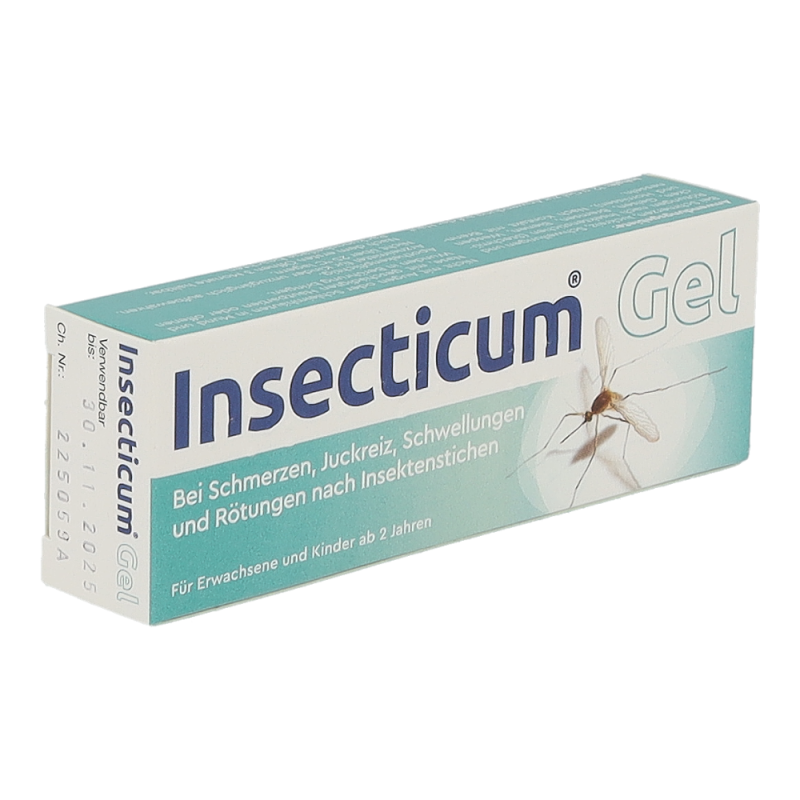 Insecticum Gel eignet sich zur Behandlung von Schmerzen, Juckreiz, Schwellungen und Rötungen nach Insektenstichen (wie Stechmücken, Gelsen, Bremsen, Bienen, Wespen und Hornissen) sowie nach Kontakt mit Brennnessel. Das Gel entfaltet aufgrund seiner Zusammensetzung rasch eine schmerzlindernde, juckreizhemmende, kühlende und abschwellende Wirkung. Durch die alkoholhältige, fettfreie Gelgrundlage ist zudem auch ein desinfizierender Effekt gegeben.