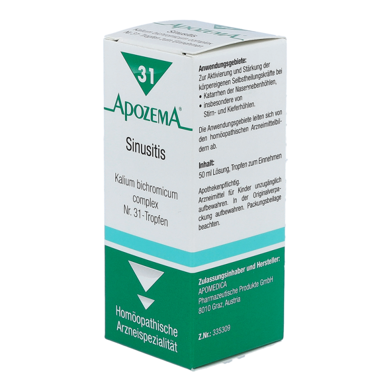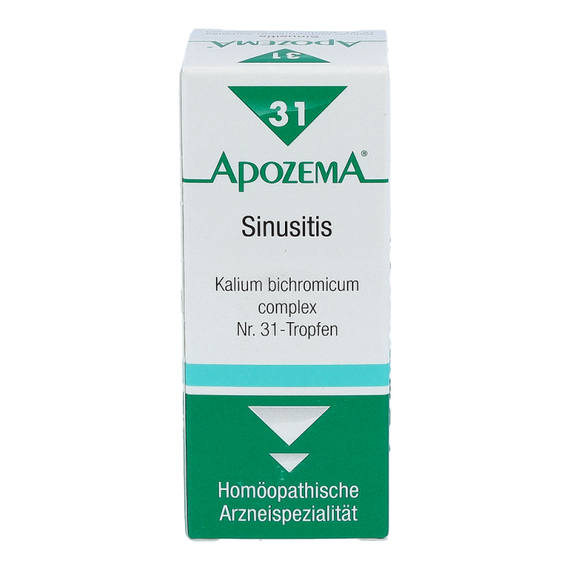 Apozema Sinusitis-Tropfen Nr. 31 von APOMEDICA regen die Selbstheilungskräfte gemäß dem homöopathischen Arzneimittelbild bei Entzündungen der Nasennebenhöhlen insbesondere von Stirn- und Kieferhöhlen an