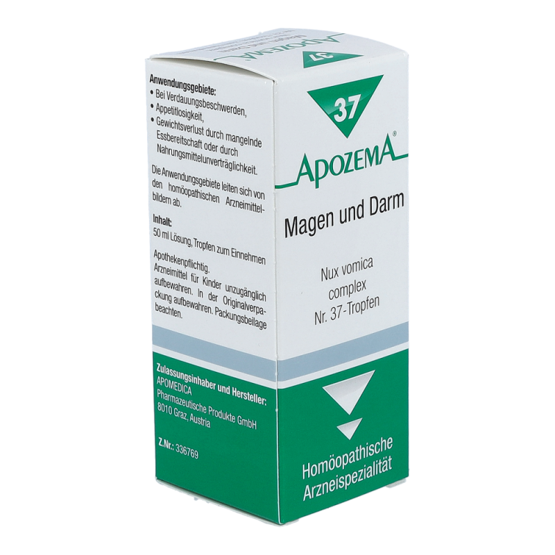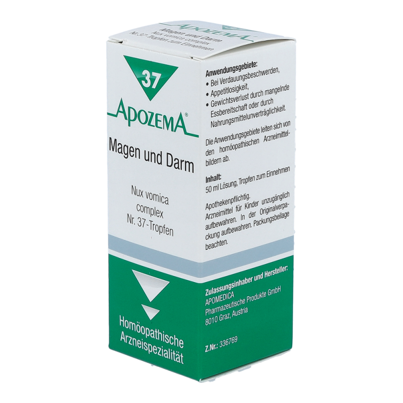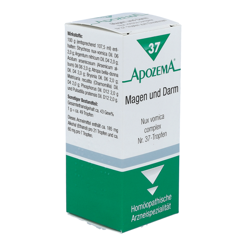 APOZEMA Nr. 37 Magen- und Darm-Tropfen regen die Selbstheilungskräfte gemäß dem homöopathischen Arzneimittelbild bei Verdauungsbeschwerden, Appetitlosigkeit, Gewichtsverlust durch mangelnde Essbereitschaft oder durch Nahrungsmittelunverträglichkeit an..