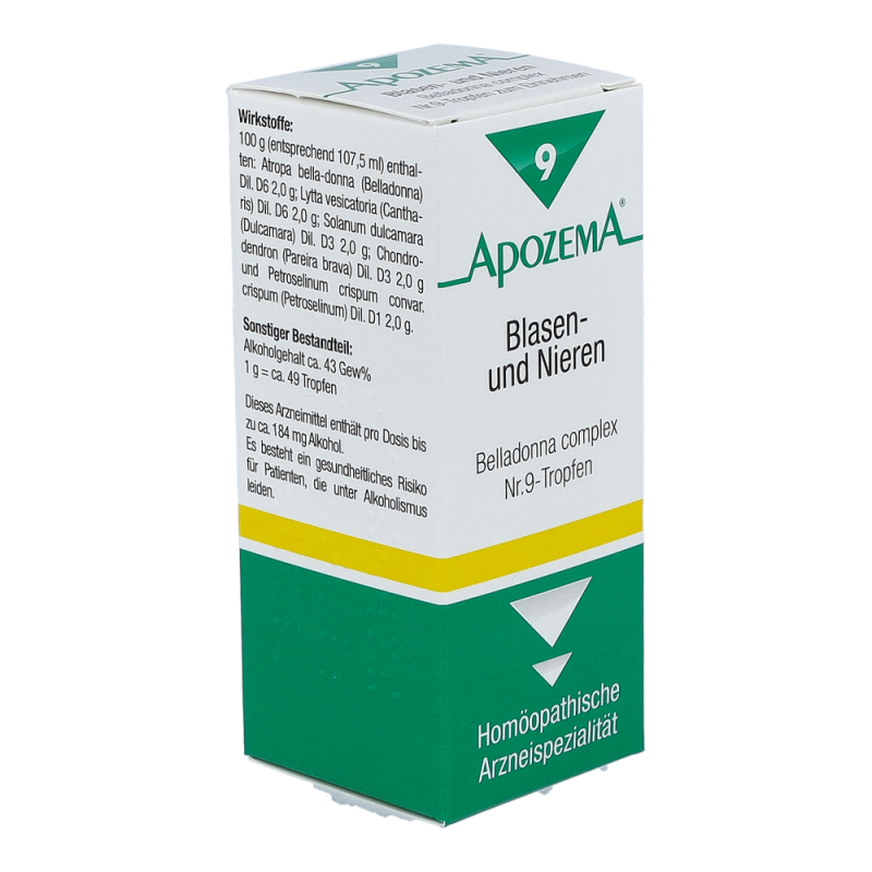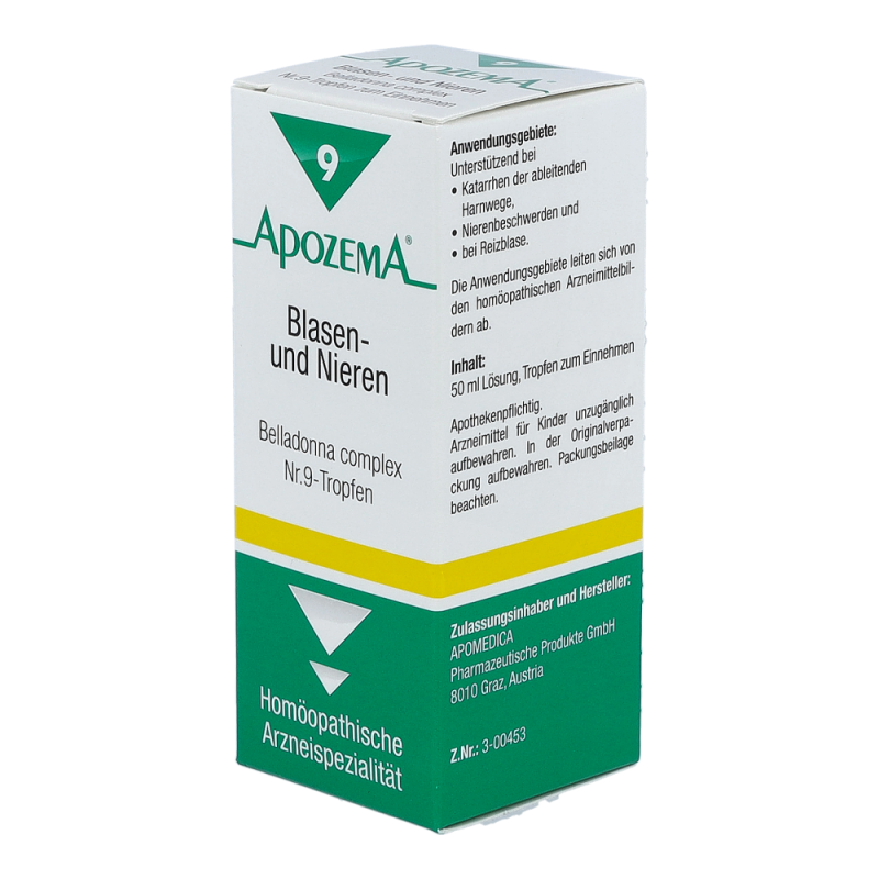 APOZEMA Blasen- und Nieren-Tropfen Nr. 9 von APOMEDICA regen die Selbstheilungskräfte gemäß dem homöopathischen Arzneimittelbild bei Entzündungen der ableitenden Harnwege, Nierenbeschwerden und Reizblase an.