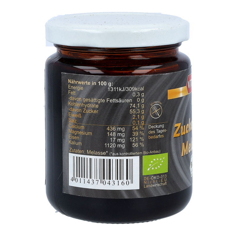 Applefords Melasse Bio mit Mineralstoffen und Spurenelementen in natürlicher Form wird durch Auspressen von Bio-Zuckerrohr gewonnen. Das Produkt kann einen wesentlichen Beitrag zur Deckung Ihres Tagesbedarfs an Vitalstoffen sein. Appleford’s Bio-Melasse wird bei der Gewinnung nicht raffiniert und ist frei von jeglichen Zusatz- und Konservierungsstoffen.
