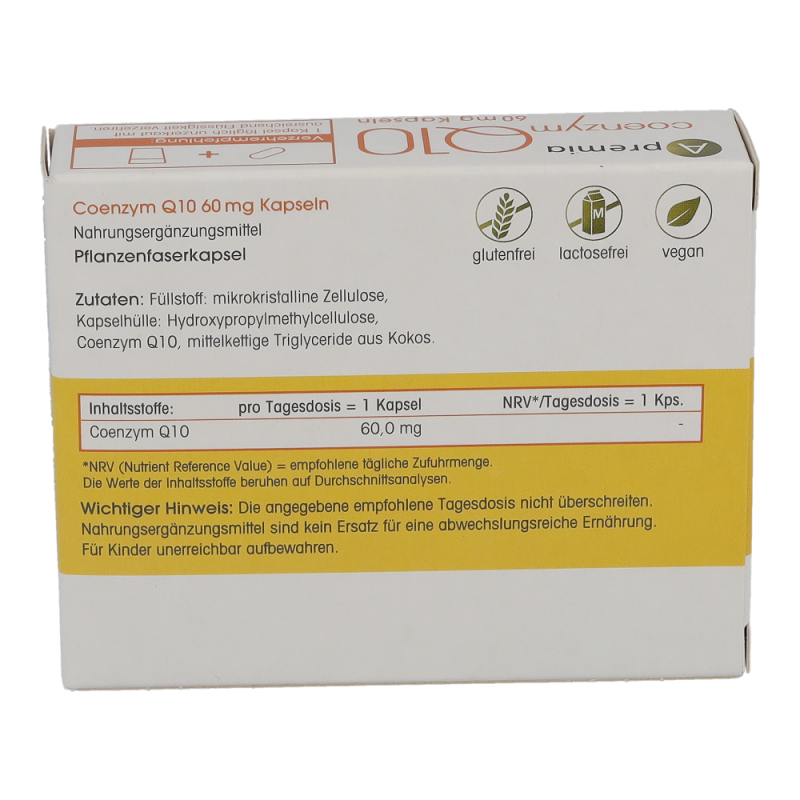 Apremia Q10 Coenzym 60 mg Kapseln spielen in den Mitochondrien, den Kraftwerken in unseren Körperzellen, eine Schlüsselrolle bei der Bildung zellulärer Energie. Die Organe mit dem höchsten Energiebedarf (Herz, Lunge und Leber) weisen deshalb auch die höchste Q10-Konzentration auf.