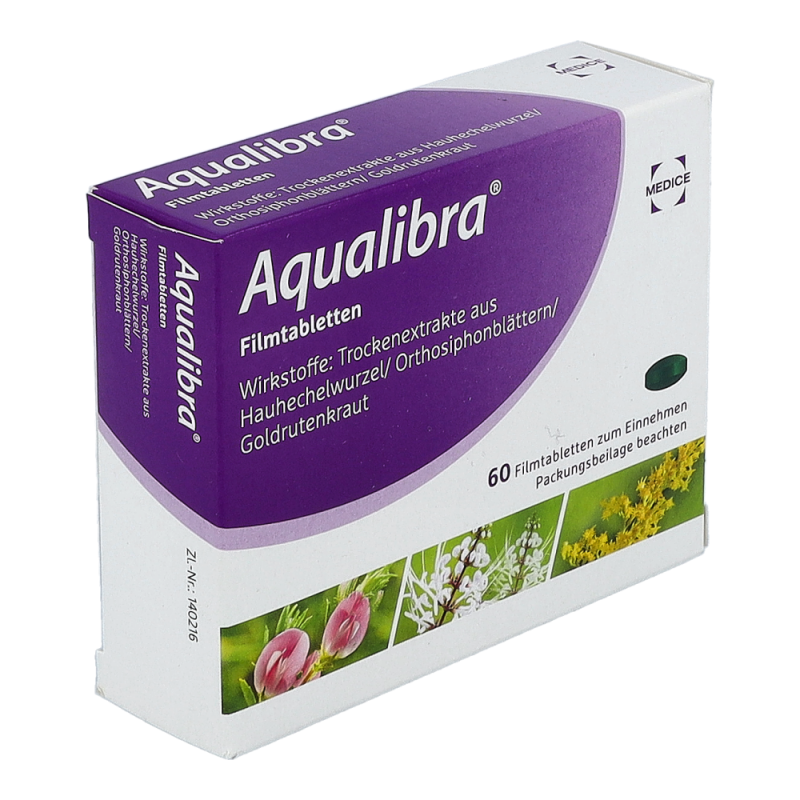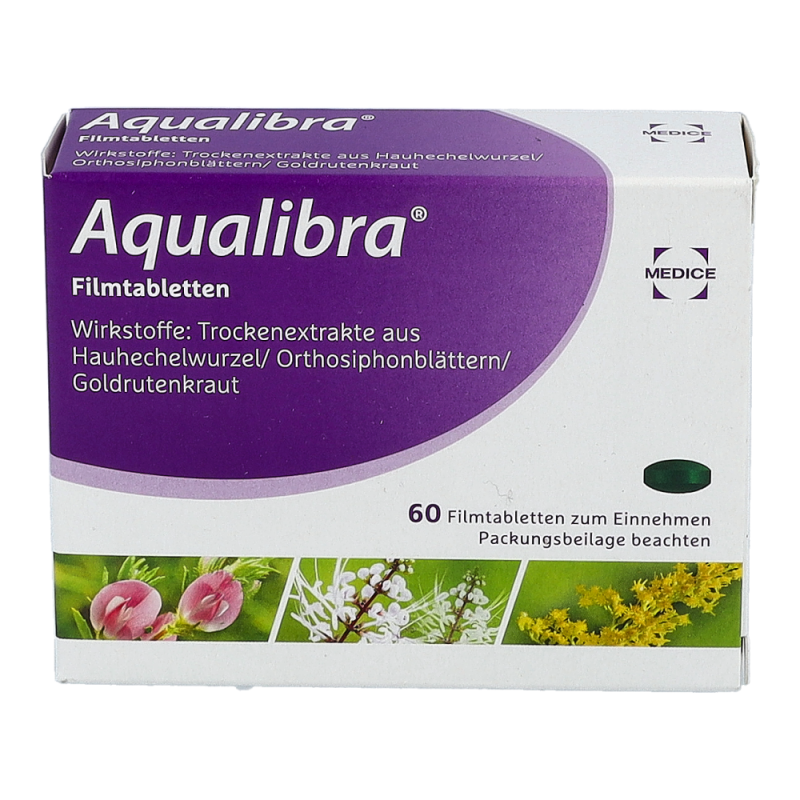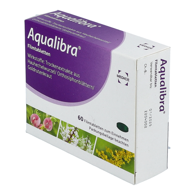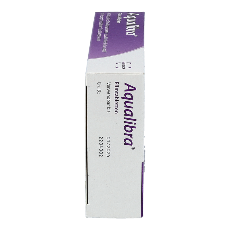 - 3x täglich 2 Aqualibra® Filmtabletten mit reichlich Flüssigkeit einnehmen.