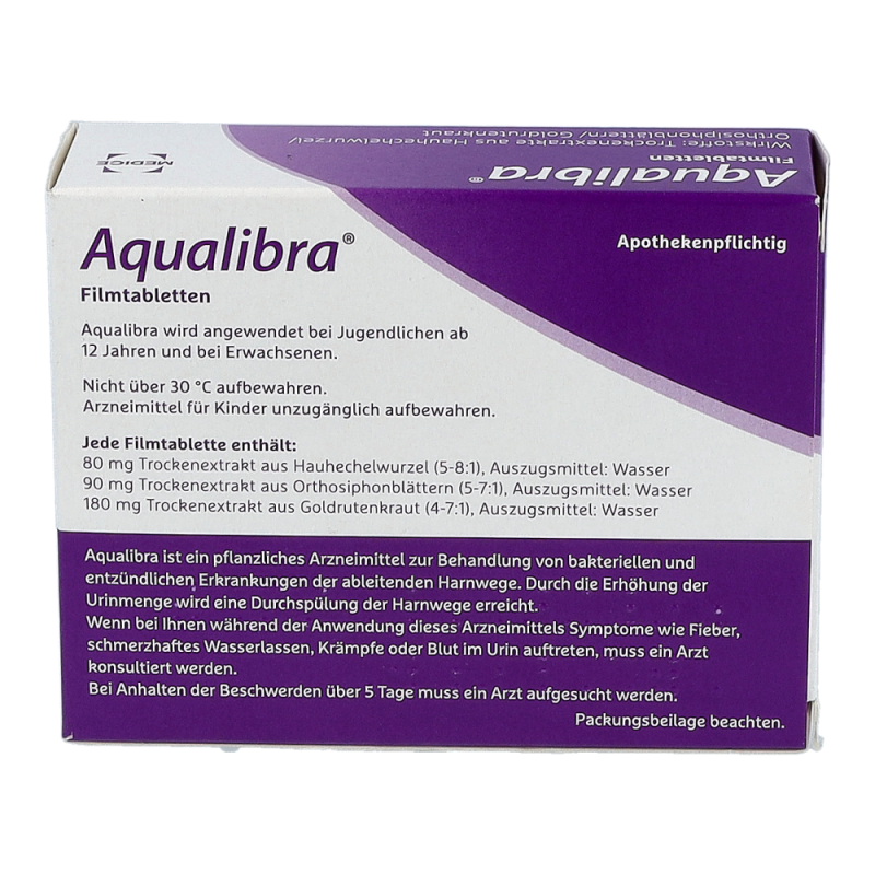 Aqualibra® wird zur Durchspülung bei entzündlichen Erkrankungen der ableitenden Harnwege, also auch bei häufigen Blasenentzündungen sowie zur Vorbeugung bei Harnsteinen und Nierengrieß angewendet. Aqualibra® ist für Erwachsene und Jugendliche ab 12 Jahren geeignet.