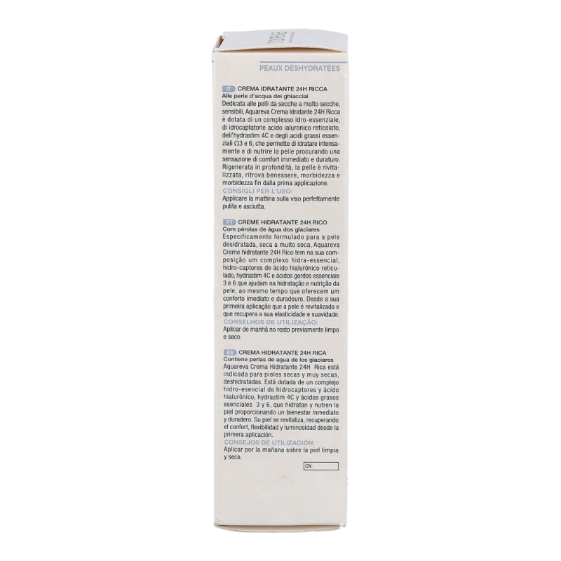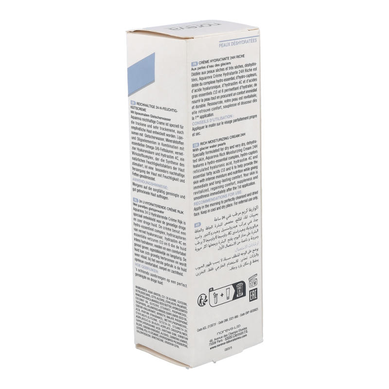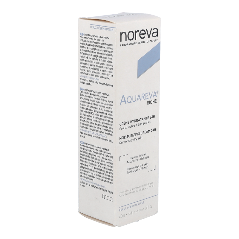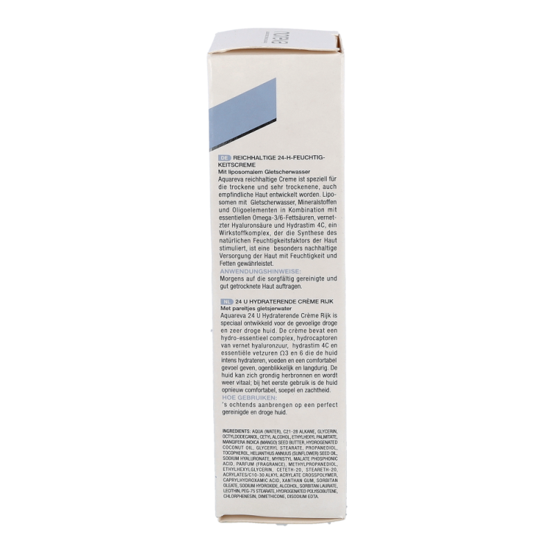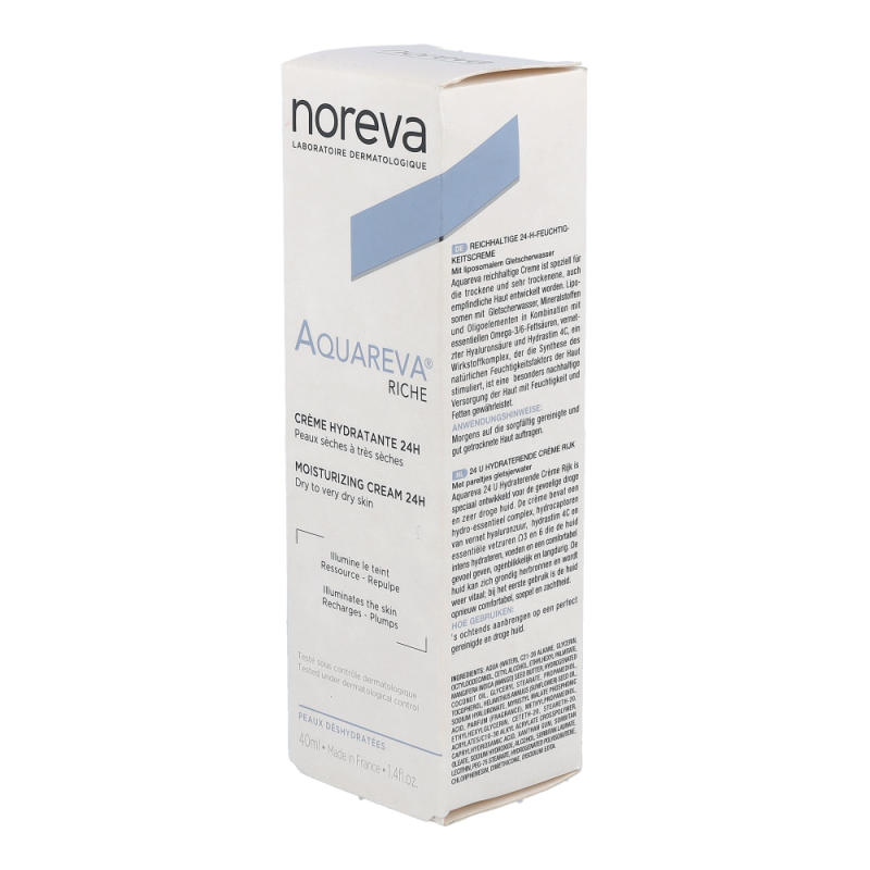 Aquareva Creme reichhaltig erhöht langanhaltend den Feuchtigkeitsgehalt der Haut. Die Creme schützt außerdem die Haut vor äußeren Umweltfaktoren und begrenzt den natürlichen Wasserverlust der Haut. Aquareva schenkt der Haut intensive Feuchtigkeit. Die Selbstregulierung der Haut wird angeregt.