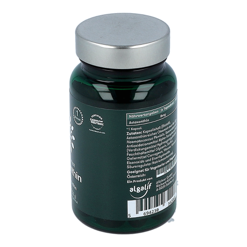 Enthält Astalif® ein luftdicht verkapseltes natürliches Astaxanthinreiches Oleoresin aus der Alge Haematococcus Pluvialis in veganer SeaGel® Kapsel.