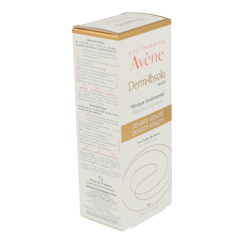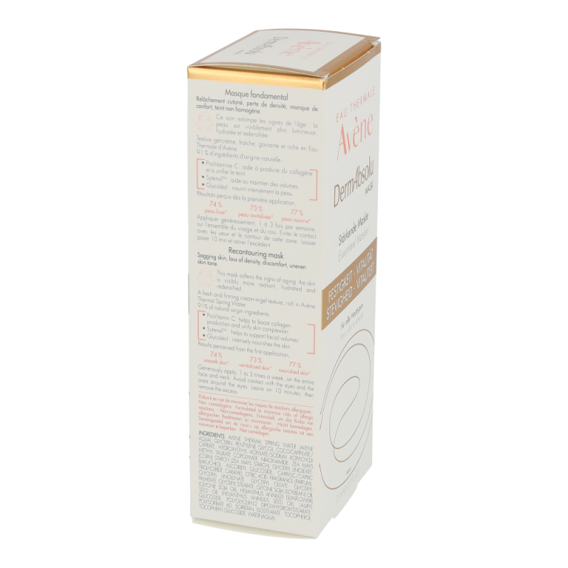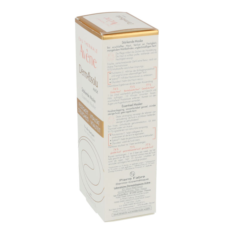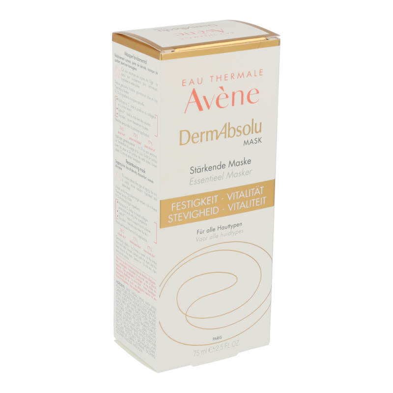 Die DermAbsolu Stärkende Maske hilft reifer Haut, Komfort, Ausstrahlung und Dichte zurückzugewinnen. Ihre leichte, schmelzende Gel-Creme-Textur umhüllt die Haut sanft und verteilt die Aktivstoffe während der gesamten Anwendungszeit:- Bakuchiol, eine Umstrukturierung pflanzlicher Zellen, so wirksam** wie Retinol.- Glycoleol hilft, die Barrierefunktion der Haut zu stärken und Trockenheit zu bekämpfen.Kombiniert mit Pro-Vitamin C und Niacinamid, gleichen diese beiden Aktivstoffe den Teint sofort aus und lassen ihn strahlen. Angereichert mit Avène Thermalwasser ist die Formel natürlich beruhigend und reizlindernd und duftet mit zarten Noten von Jasmin, Rose und Veilchen.