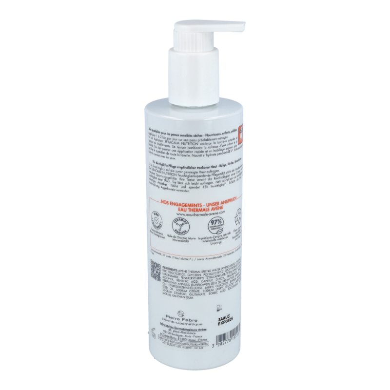 Beruhigt Spannungsgefühle, nährt und spendet Feuchtigkeit für 48 Stunden*. XERACALM NUTRITION feuchtigkeitsspendende Milch ist ein umweltverträgliches Produkt. Die 400 ml Verpackung enthält zu 70 % recyceltes Material. Die Flasche besteht aus 100 % recyceltem Kunststoff**