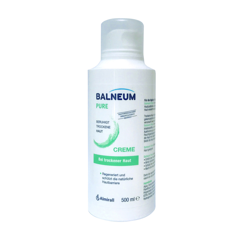 Balneum Pure Creme 500 ml wurde speziell für die tägliche Pflege von trockener und sehr trockener Haut entwickelt. Die Creme ist frei von Farb-, Duft- und Konservierungsstoffen und besonders hautverträglich. Durch die Creme wird die Haut vor Austrocknung geschützt, sie macht sie geschmeidig und sorgt für ein angenehmes Hautgefühl.