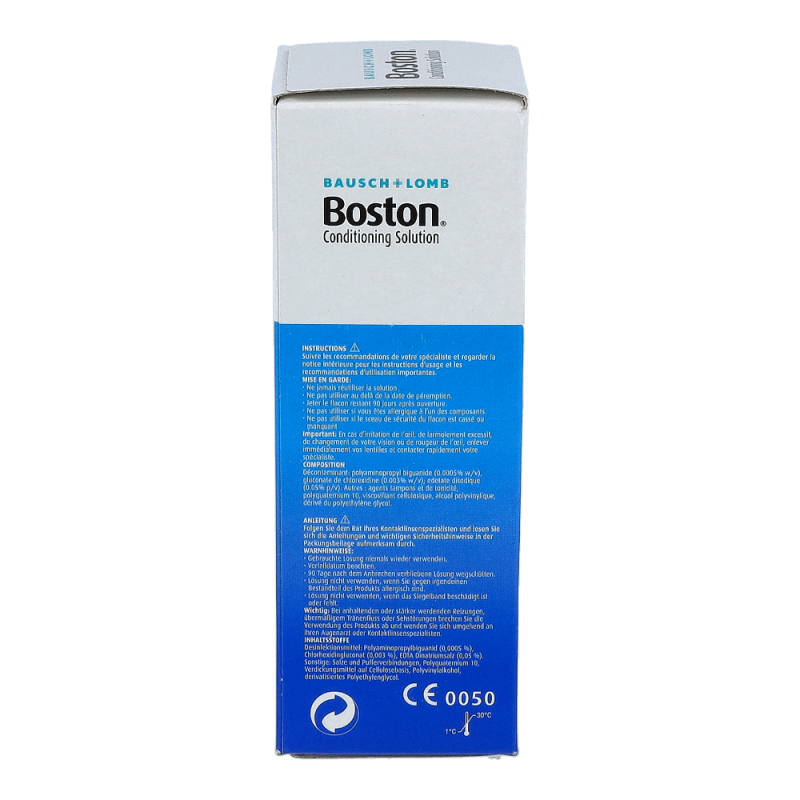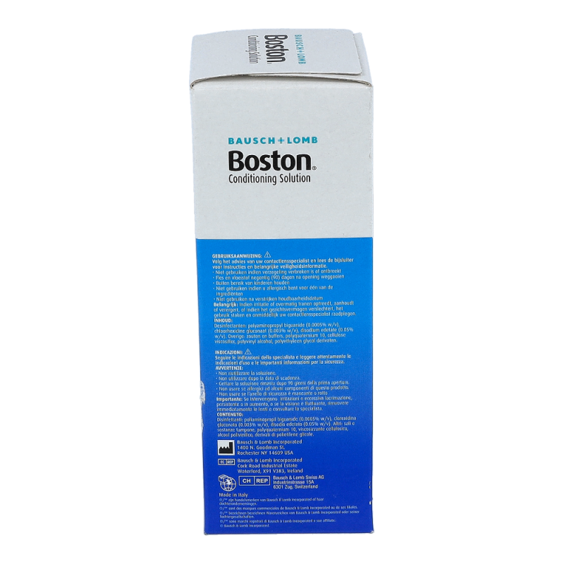 Bausch & Lomb Boston Aufbewahrungslösung ist eine speziell für sauerstoffdurchlässige und formstabile Kontaktlinsen entwickelte Lösung. Sie ist komfortabel und effizient durch ausgezeichnete Desinfektionswirkung. Durch Bildung einer Schutzschicht auf der Linsenoberfläche findet eine wirksame Reduktion von Lipid- und Proteinablagerungen statt. Hoher Tragekomfort durch optimale Benetzungseigenschaften.