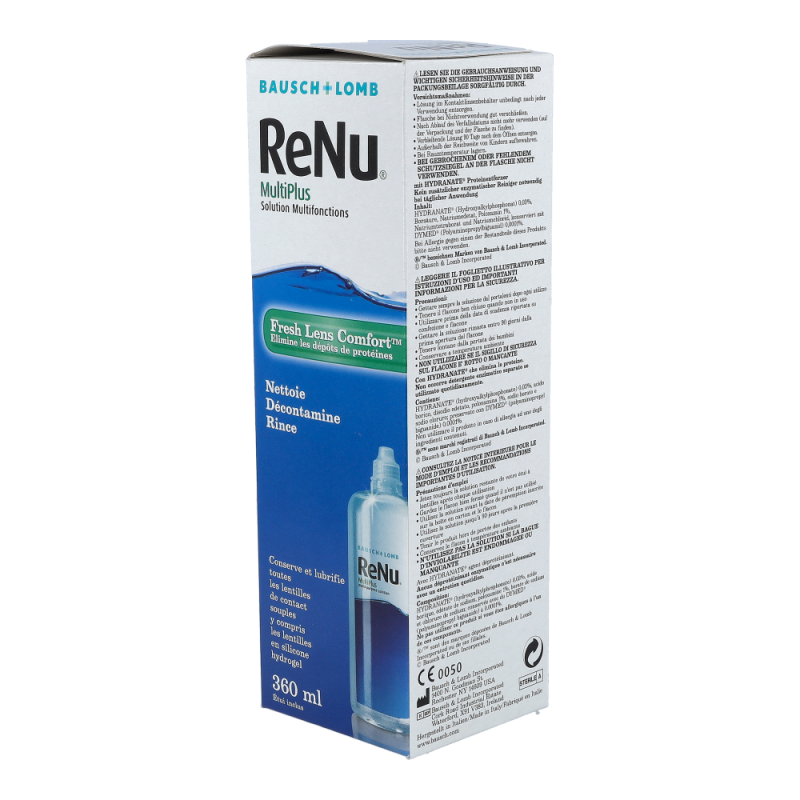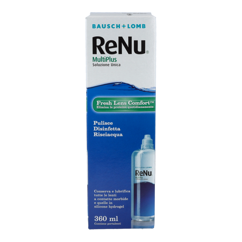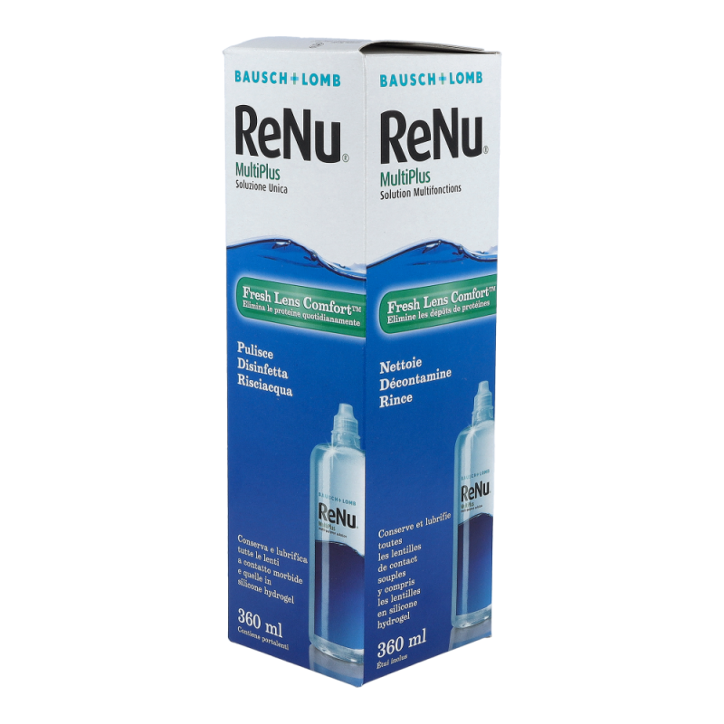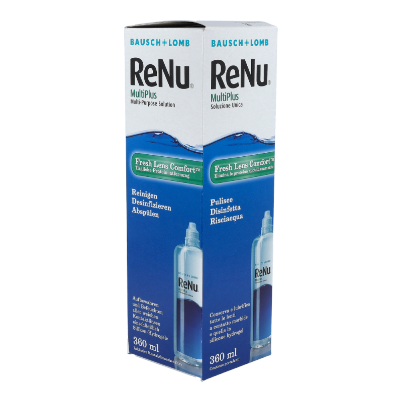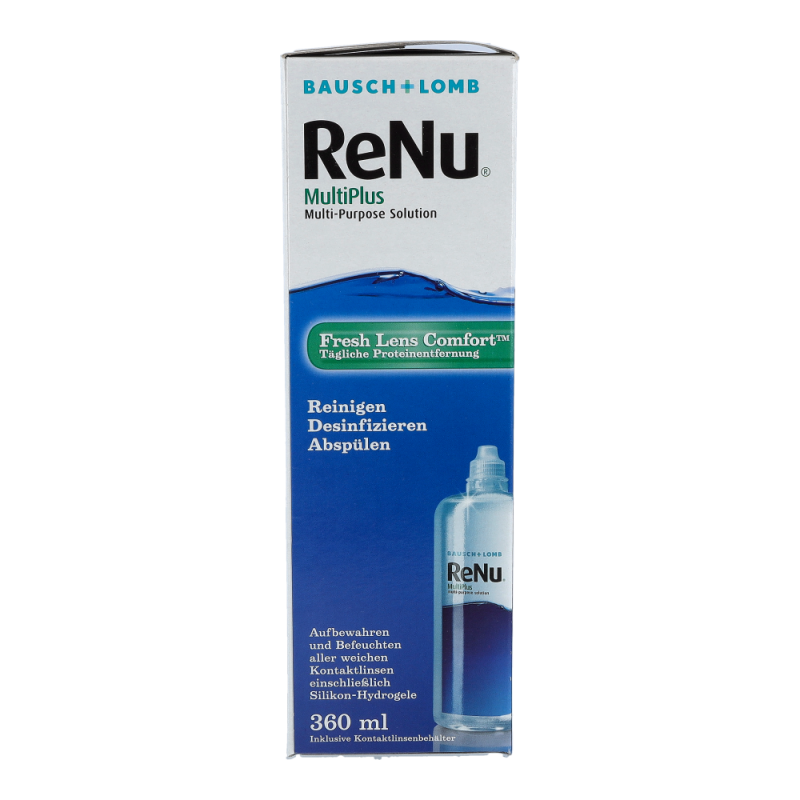 Bausch & Lomb ReNu Multi-Plus 360 ml + 1 Behälter ist ideal zur Säuberung, Desinfektion, Befeuchtung und Aufbewahrung weicher Kontaktlinsen. Proteinablagerungen, die sich auf der Kontaktlinsenoberfläche sammeln, werden entfernt.