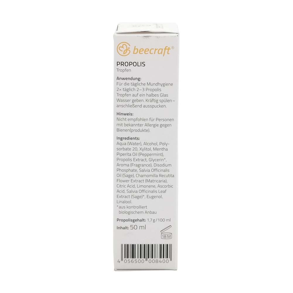beecraft® Propolis Tropfen Mundspül-Konzentrat eignet sich als natürliche Ergänzung für die tägliche Mund- und Zahnpflege. Der Propolis-Extrakt bietet bei regelmäßiger Anwendung einen antibakterieller Schutz und schützt so vor Parodontose, Zahnfleischproblemen sowie Mundgeruch ohne dabei die Balance der Mundflora zu beeinflussen. Zusätzlich pflegen und beruhigen die Extrakte aus Salbei und Kamille auch einen beanspruchten und zu Problemen neigenden Mundraum. beecraft® Propolis Tropfen ist der verbesserte Nachfolger des Produktes „Sanhelios Aagaard Propolis Mundwasser“ – jetzt stark preisreduziert bestellen!