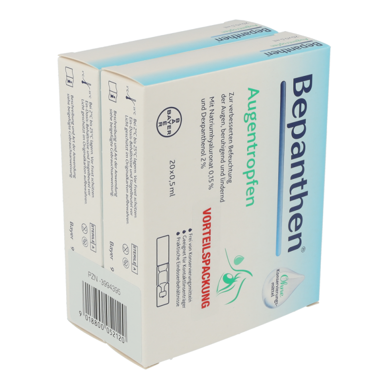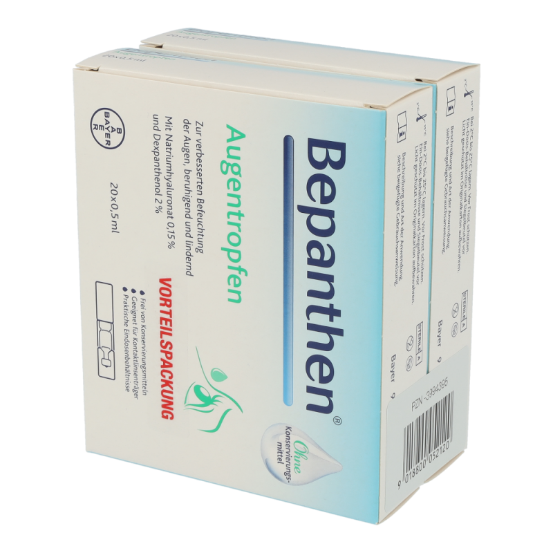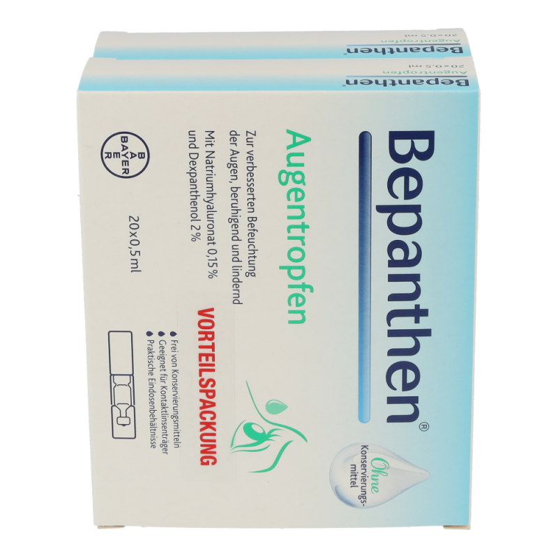 Bepanthen Augentropfen mit Hyaluronsäure und Dexpanthenol befeuchten und beruhigen trockene Augen sofort und lindern rasch die Symptome. Sie sind frei von Konservierungsmitteln und mit allen Arten von Kontaktlinsen verträglich.