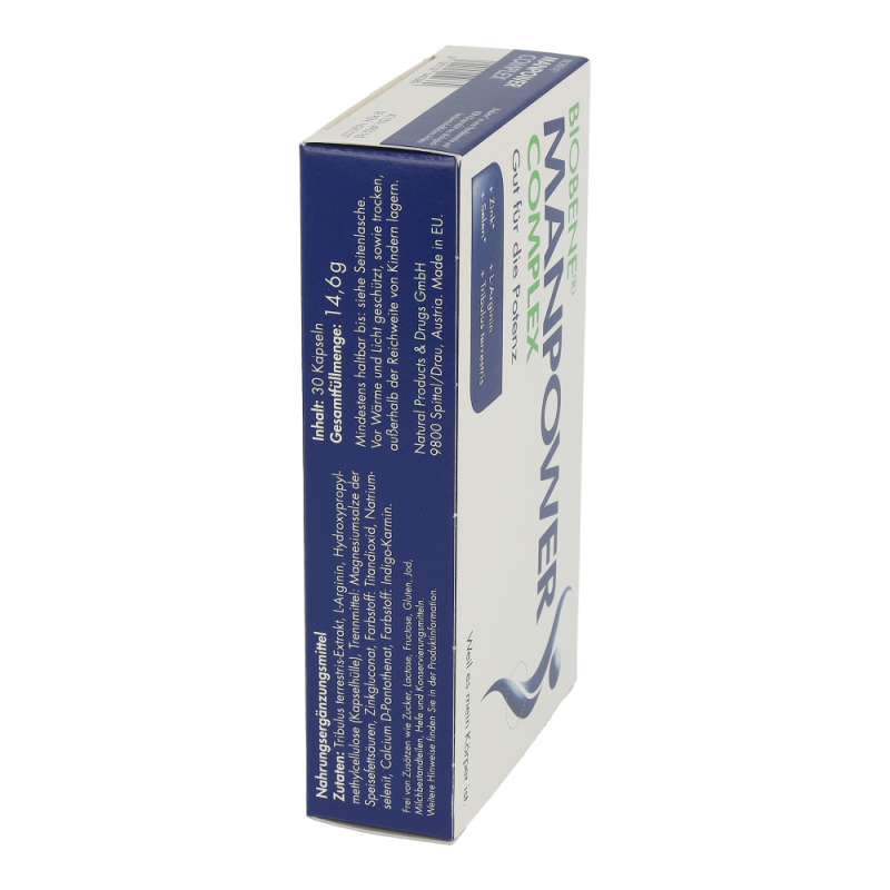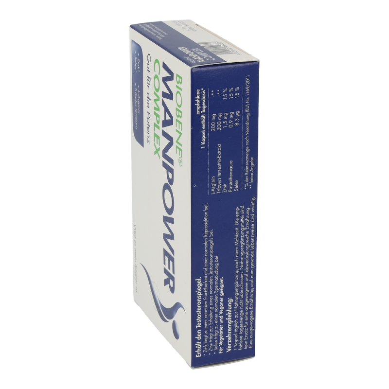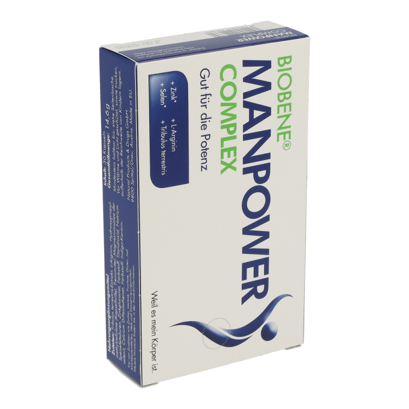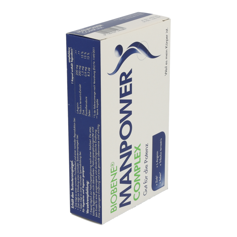 BIOBENE® Manpower Kapseln ist ein Nahrungsergänzungsmittel auf Basis wertvoller, sehr gut verträglicher, hochkonzentrierter Vitalstoffe, die von Experten kombiniert wurden: die Energie des Lebens, wenn man/Mann es braucht.BIOBENE® Manpower Complex enthält die Aminosäure L-Arginin und einen Pflanzenextrakt aus Tribulus terrestris.L-Arginin ist eine Aminosäure und enthält mit vier Stickstoffgruppen mehr Stickstoff (N) als alle anderen Aminosäuren. Daher kann der Körper nur aus L-Arginin das gefäßaktivierende Molekül NO (Stickoxid) bilden. Dieses Molekül NO regelt die Weitung der Gefäße und beeinflusst so die Durchblutung und den Blutdruck.Tribulus terrestris Extrakt wird aus den oberirdischen Pflanzenteilen der tropischen Frucht Erd-Burzeldorn (auch Dreispitz genannt) gewonnen und beinhaltet Saponine, die zu den Phytosterinen gehören. Die aus Indien stammende Pflanze besitzt reißnagelartige Dornen und wird seit jeher als Stärkungsmittel, zum Muskelaufbau und zur Steigerung der Libido eingesetzt..