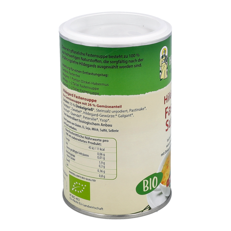 Biofit Hildegard Fastensuppe dient als wertvolle Ergänzung beim Heilfasten. Heilfasten ist jedoch etwas völlig anderes als Hungern. Beim richtig durchgeführten Heilfasten entsteht nämlich kein Hungergefühl. Die Fastensuppe nach Hildegard gibt ein gutes Sättigungsgefühl und führt zu einem kräftigen Energie-Schwung.