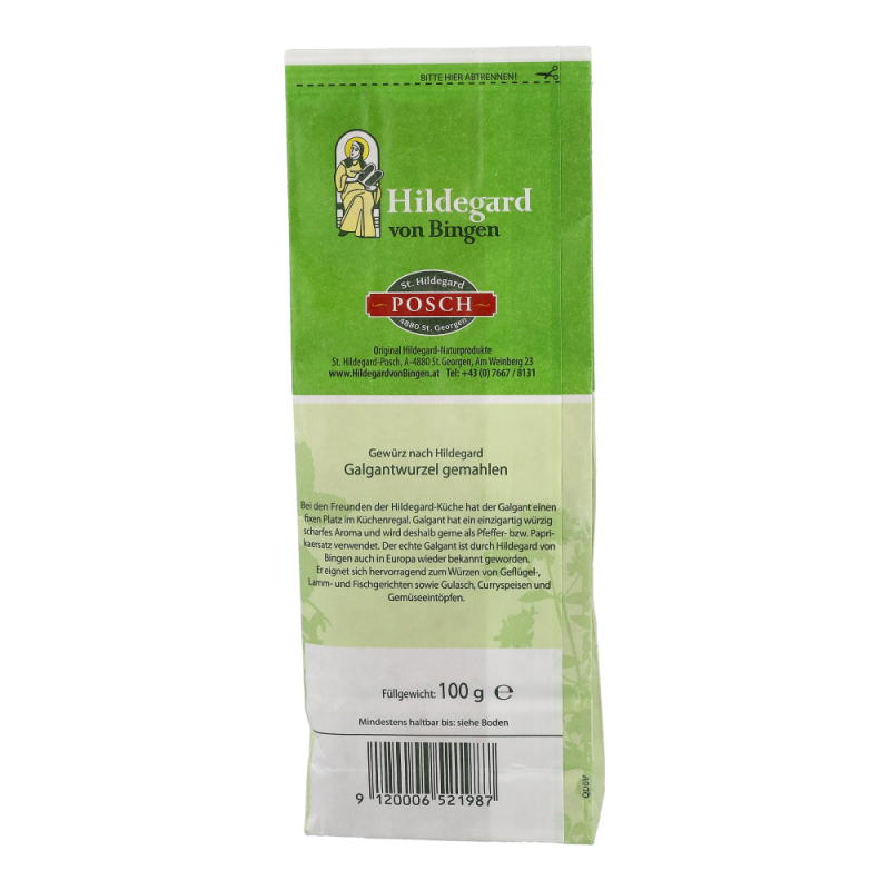 Biofit Hildegard Galgantwurzel gemahlen ist durch seine aromatische Schärfe eine ausgezeichnete Alternative zu Pfeffer und Paprika. Sie werden die wärmende Wirkung sofort spüren. Würzen Sie die Gerichte anfangs vorsichtig, denn Galgant ist scharf. Galgant sollte seinen fixen Platz im Küchenregal jedes Hildegardfreundes haben.