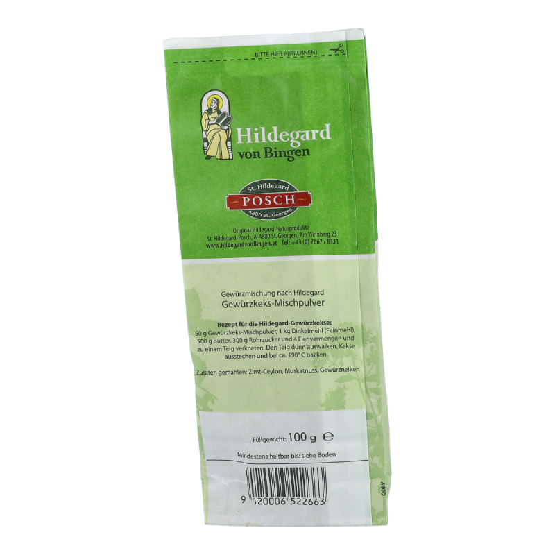 Biofit Hildegard Kekspulver Mischung dient zur Herstellung der klassischen Hildegard von Bingen Gewürzkekse. Nach der Hildegard von Bingen Lehre mindern die Kekse die „Schadsäfte“ im Körper und besitzen einen aufweckenden Geschmack. Einfach zu backen und auch köstlich zu genießen.