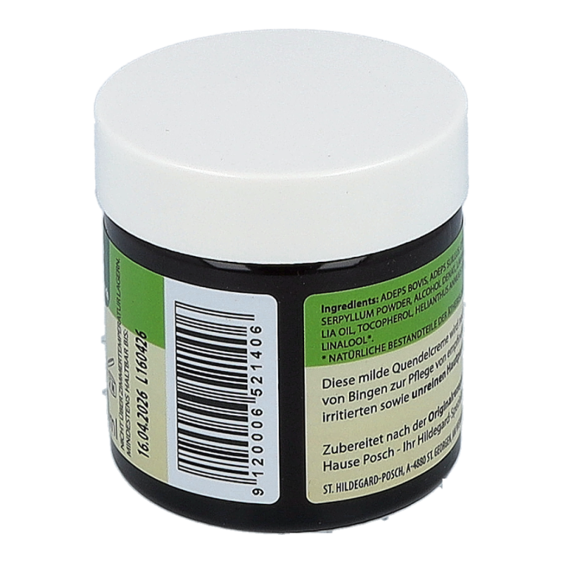 Biofit Hildegard Quendel Creme wird gerne bei Unreinheiten der Haut und strapazierten Hautpartien eingesetzt. Die Wirkstoffe des Quendels pflegen die Haut und beseitigen Hautunreinheiten, deren Ursprung oftmals auch in einer falschen und einseitigen Ernährung zu finden sind. Denken Sie daher bei der Anwendung der Quendelcreme auch an Ihre Essgewohnheiten.