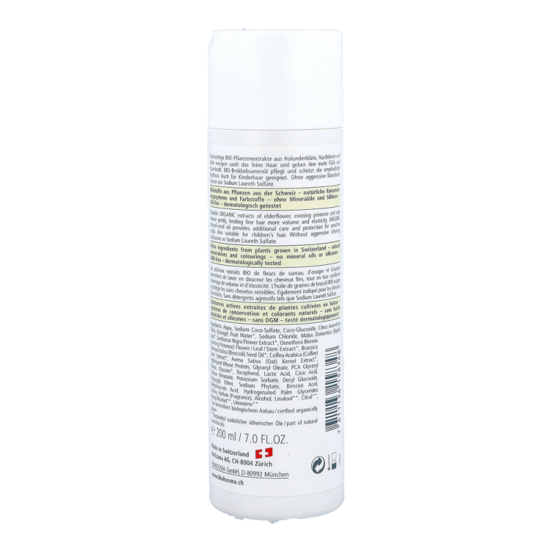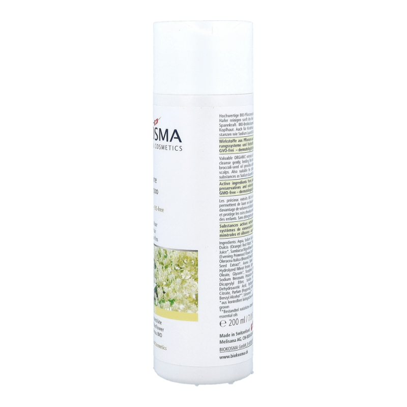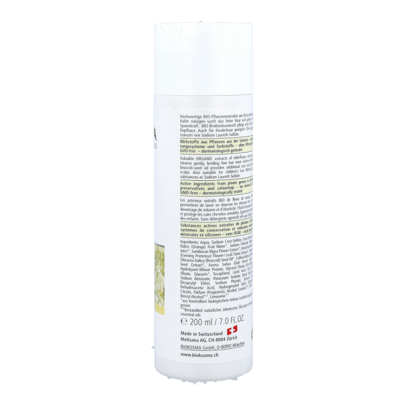 Biokosma Shampoo Volume & Shine Hollerblüten reinigt mit Hilfe hochwertiger Pflanzenextrakte aus Holunderblüten, Nachtkerzen und Hafer sanft das feine Haar und gibt ihm mehr Fülle und Spannkraft. Broccolisamenöl pflegt und schützt die empfindliche Kopfhaut. Auch für Kinderhaar geeignet.