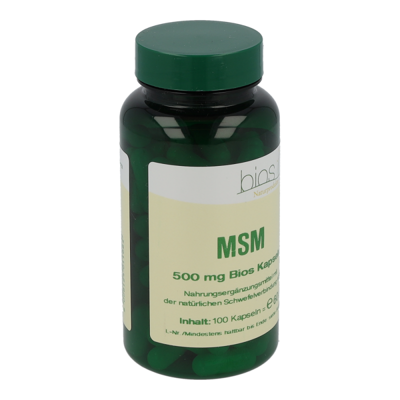 Bios MSM 500 mg Kapseln enthalten 500 mg Methyl-Sulfonyl-Methan in einer Hartgelatinekapsel. MSM ist ein natürlich vorkommender Nährstoff, der vorwiegend in Pflanzen, Fleisch, Eiern, Geflügel und Milchprodukten vorkommt. MSM ist eine Schwefelverbindung und stellt eine biologisch verwertbare Form von Schwefel dar.