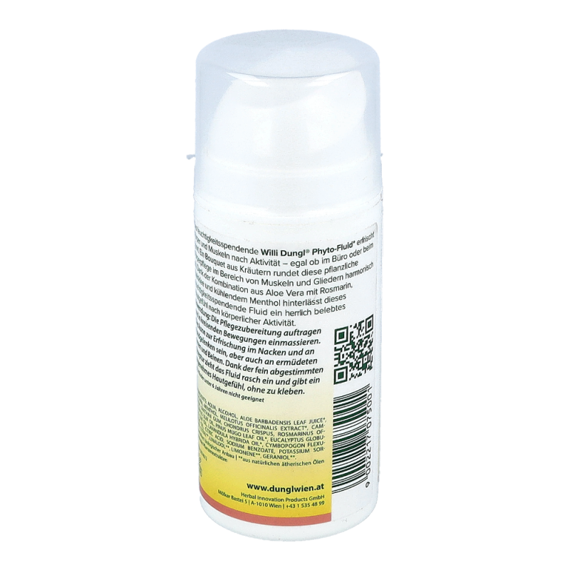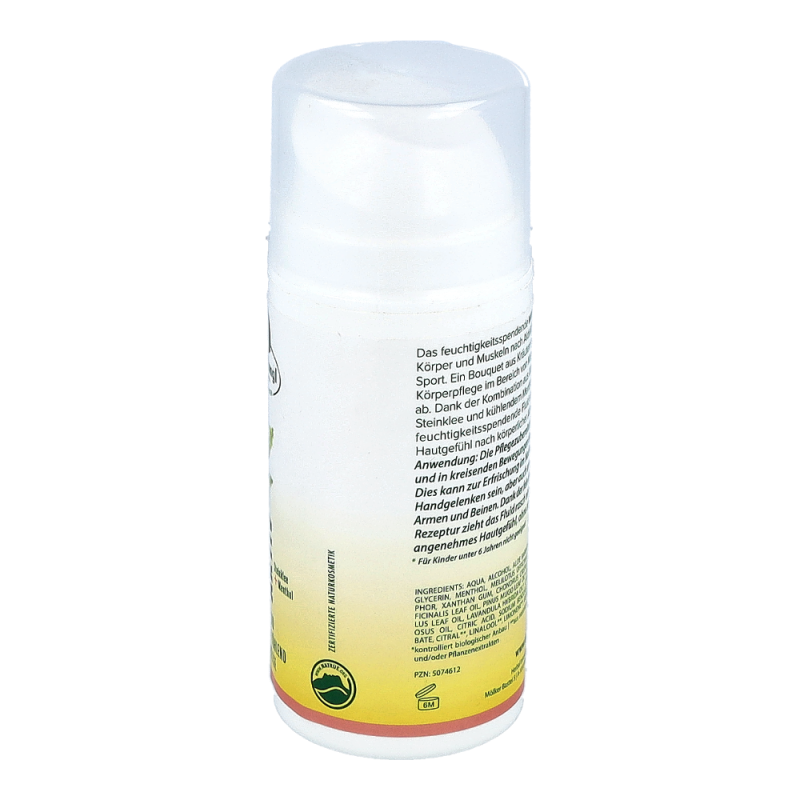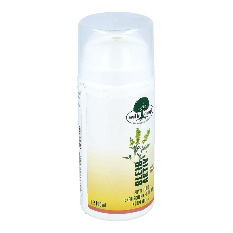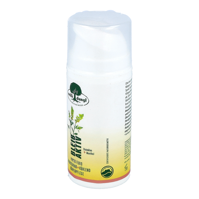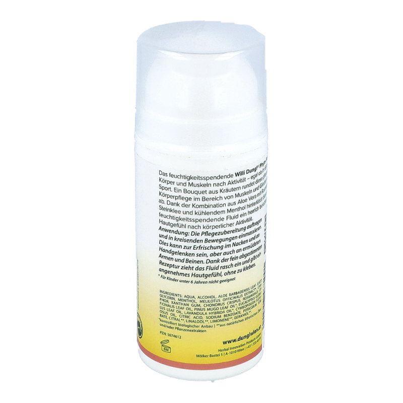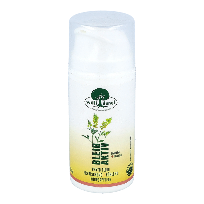 Das feuchtigkeitsspendende Willi Dungl ® Phyto-Fluid erfrischt Körper und Muskeln nach Aktivität – egal ob im Büro oder beim Sport. Wo immer Höchstleistung gefordert ist, erfolgt auch eine Ermüdung. Dank der pflegenden Kombination aus kühlender Aloe Vera mit Rosmarin, Steinklee und Menthol hinterlässt das feuchtigkeitsspendende Willi Dungl BLEIB AKTIV ® Phyto-Fluid ein angenehmes, belebtes Hautgefühl nach körperlicher Aktivität.