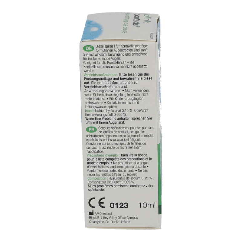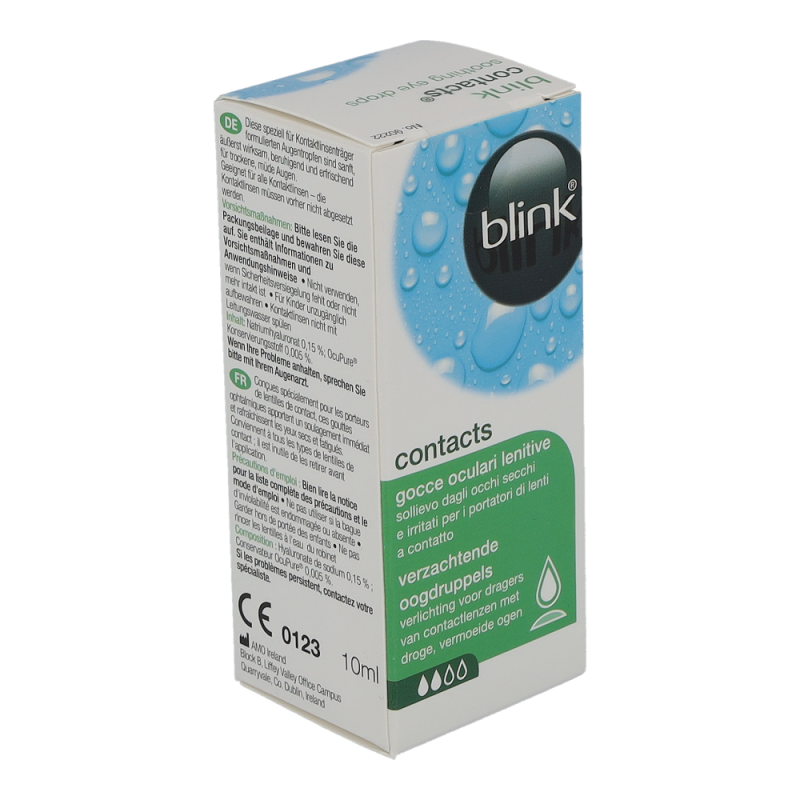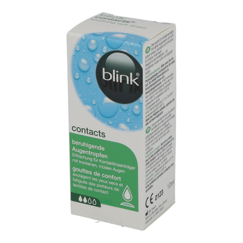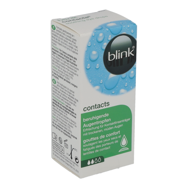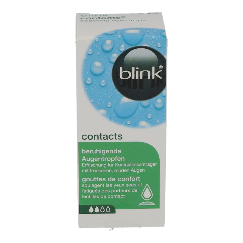 Blink Contacts+ ist eine Nachbenetzungslösung für angenehm frische und kühle Augen. Sie ist ideal für alle Arten von Kontaktlinsen, auch für Austauschsysteme und Ein-Tages-Linsen. Die Lösung eignet sich zur Anwendung bei dem Gefühl von Trockenheit oder Irritationen am Auge. Sie spendet lang anhaltende Frische und Feuchtigkeit, ohne die Kontaktlinse herausnehmen zu müssen.