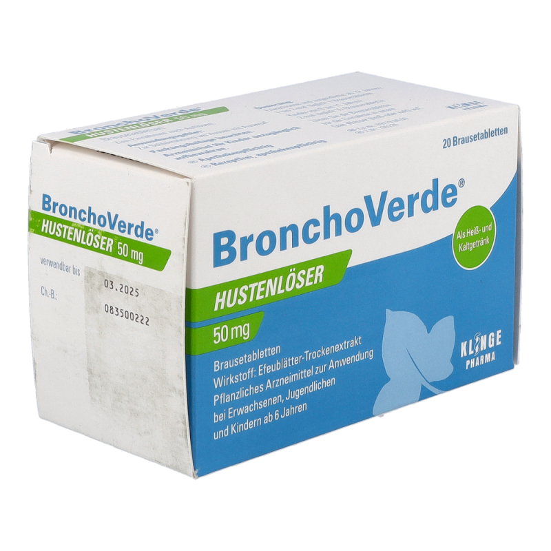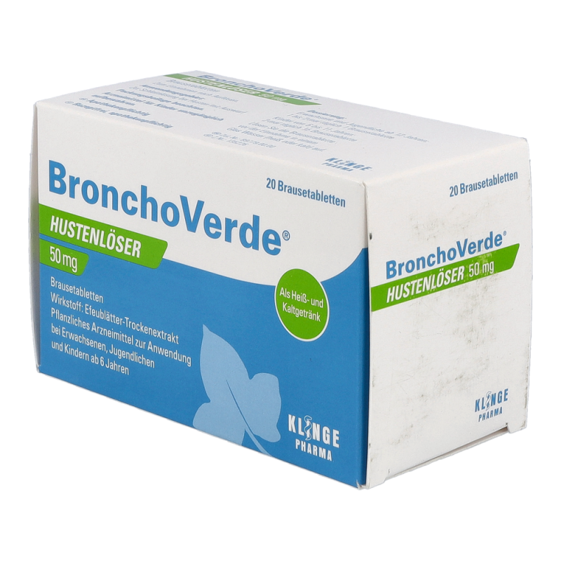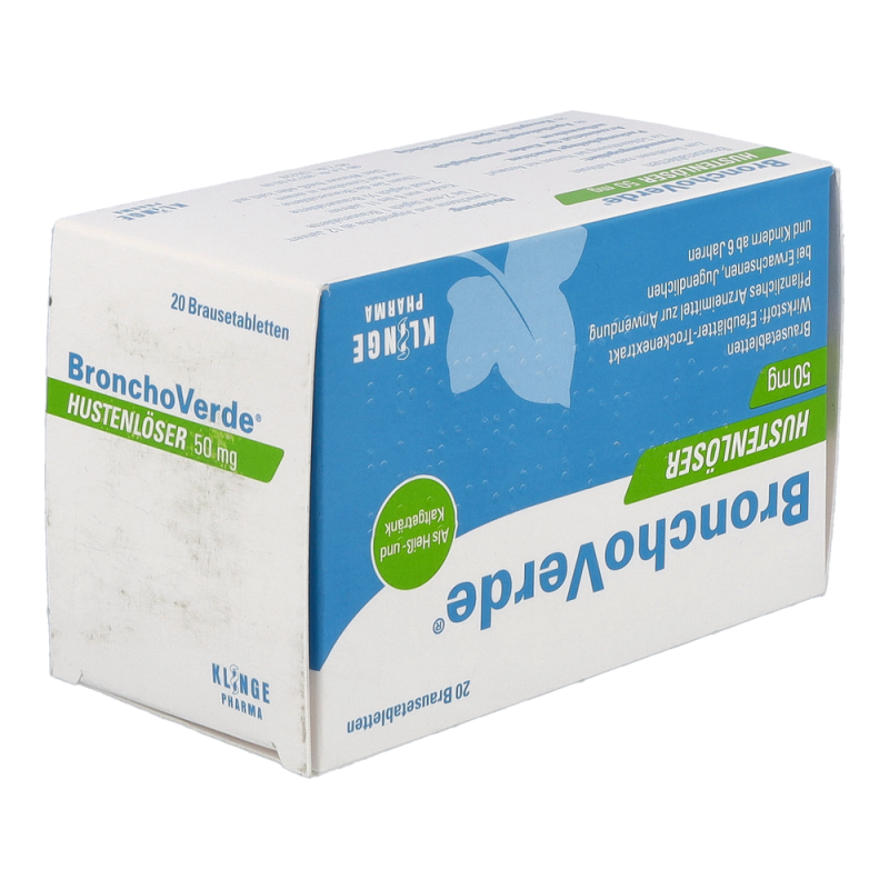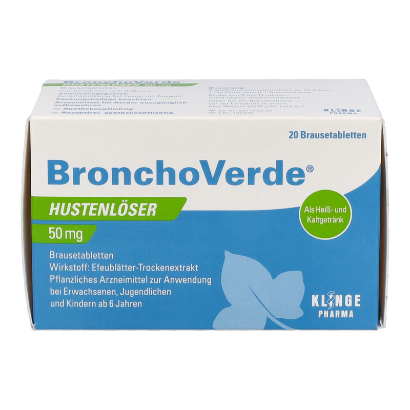 Bronchoverde Hustenlöser 50 mg Brausetabletten ist ein pflanzliches Arzneimittel zur Schleimlösung bei Husten mit Auswurf für Erwachsene, Jugendliche und Kinder ab 6 Jahren. Dieses Produkt erhalten Sie in den Packungsgrößen 10 und 20 Stück.