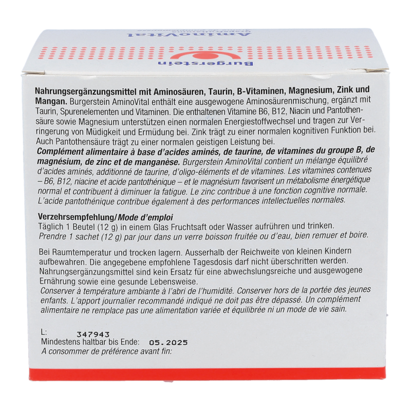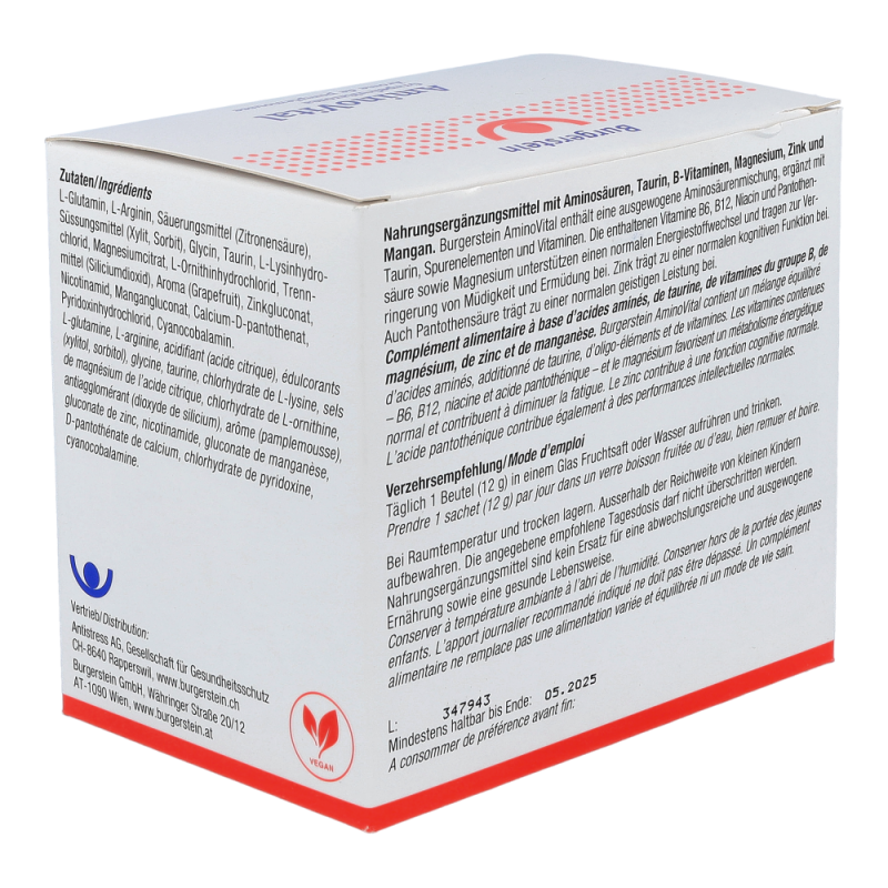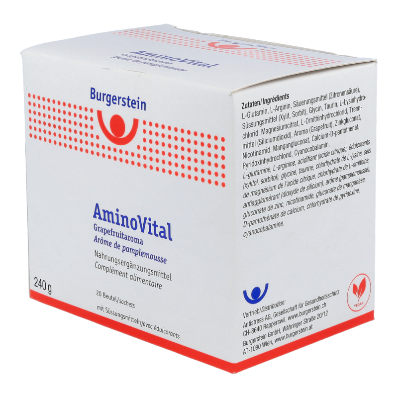 Burgerstein Aminovital Sachets enthalten eine Auswahl spezieller Aminosäuren für die gezielte Unterstützung des Hirnstoffwechsels. Dieses Produkt dient für den Aufbau und die schnellere Erholung während oder nach Stress-Situationen, wie zum Beispiel im Sport. Außerdem erhöht Aminovital die mentale Fitness und die Konzentrationsfähigkeit. Weniger Müdigkeit, mehr Energie.