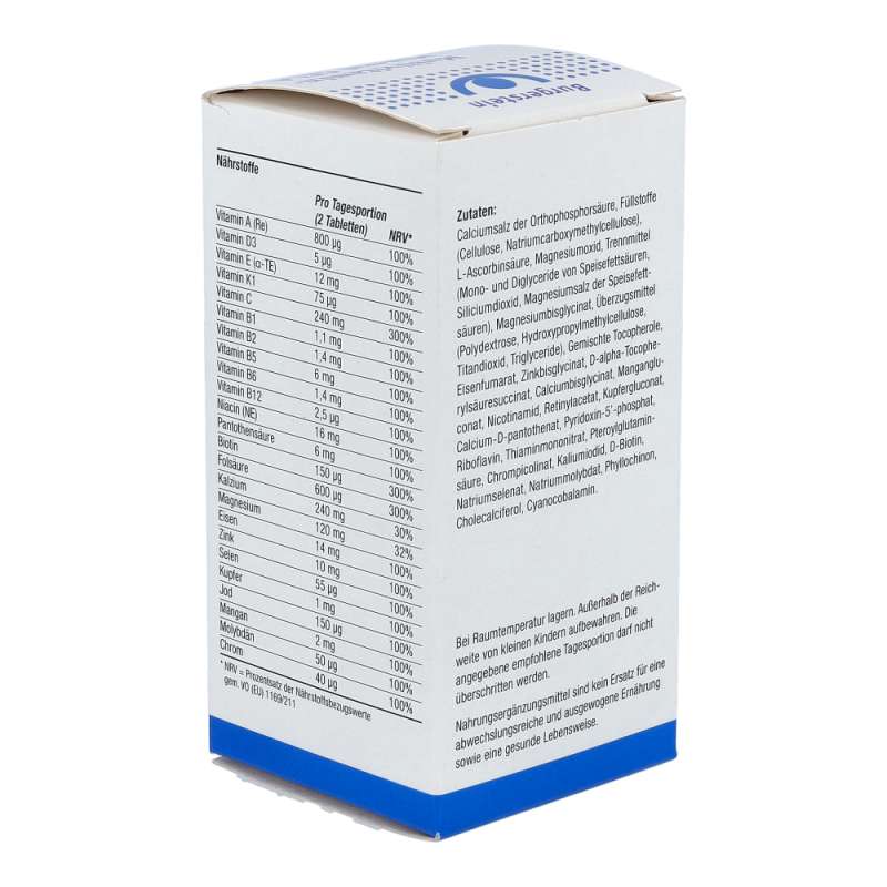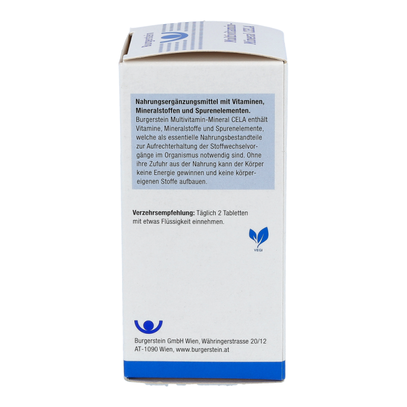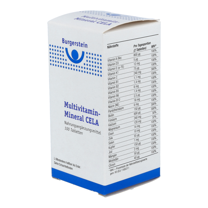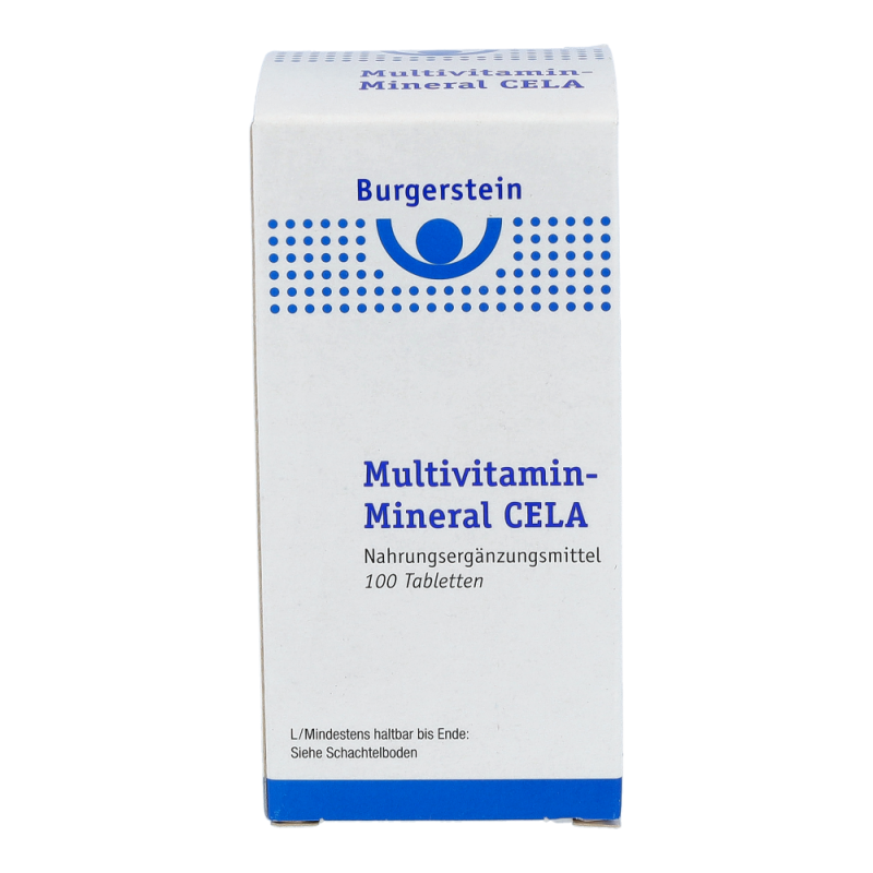 Burgerstein Cela Multivitamin Mineral Tabletten enthalten Vitamine, Mineralstoffe und Spurenelemente, welche als essentielle Nahrungsbestandteile zur Aufrechterhaltung der Stoffwechselvorgänge im Organismus notwendig sind. Ohne ihre Zufuhr aus der Nahrung kann der Körper keine Energie gewinnen und keine körpereigenen Stoffe aufbauen.