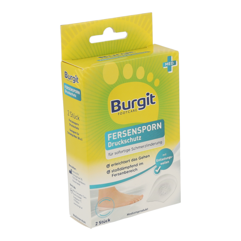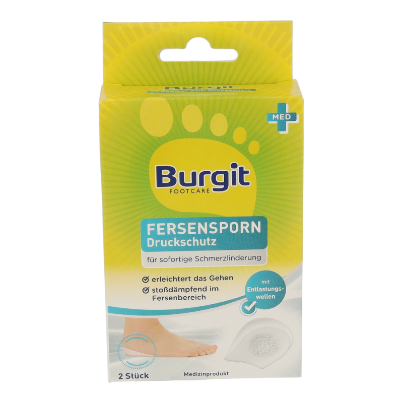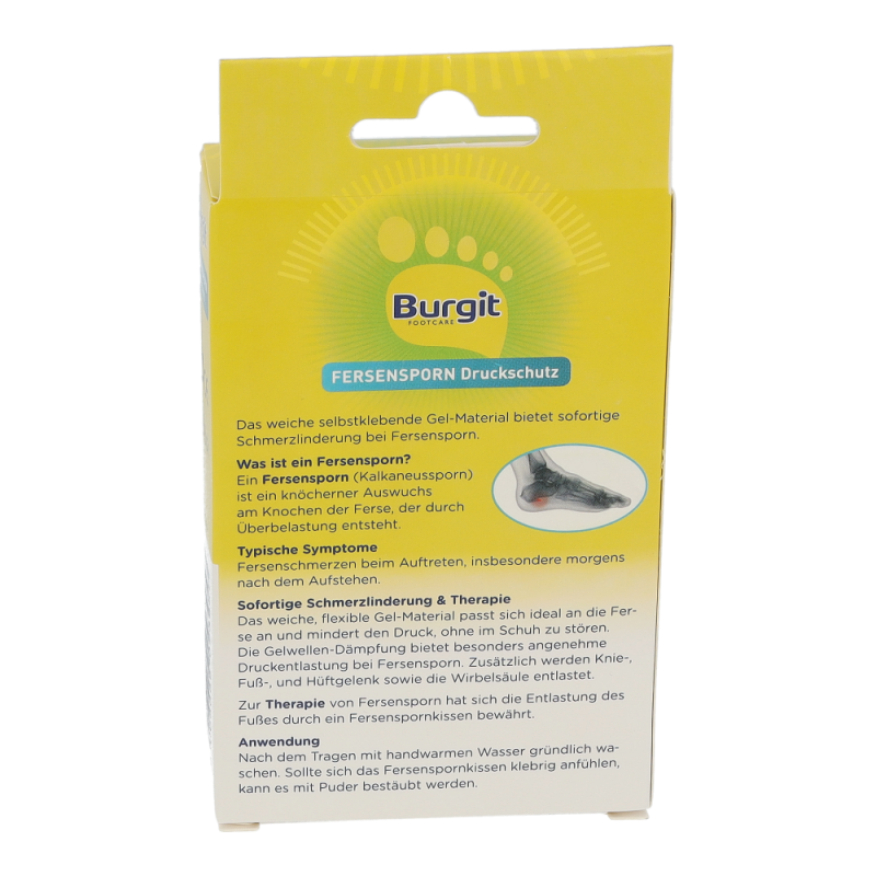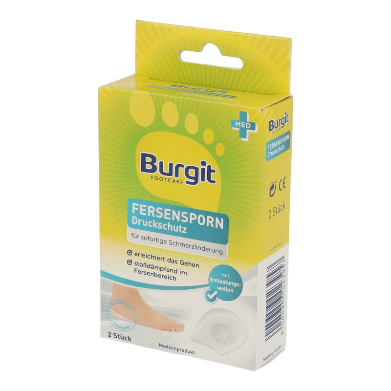 Burgit Fersensporen Druckschutz sorgt für eine sofortige Schmerzlinderung, wirkt stoßdämpfend und passt sich ideal an die Ferse an.