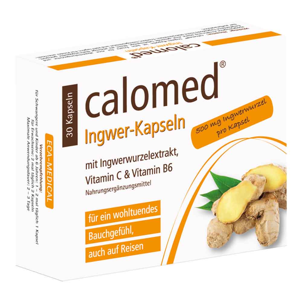 calomed Ingwer-Kapseln ist ein Nahrungsergänzungsmittel mit Ingwerwurzelextrakt, Vitamin C und Vitamin B6, wohltuend für Magen und Darm und das Wohlbefinden auf Reisen – Jetzt schnell und ohne Lieferkosten* stark preisgesenkt bestellen!