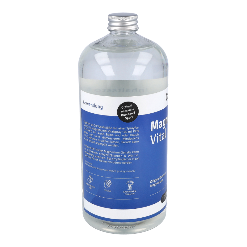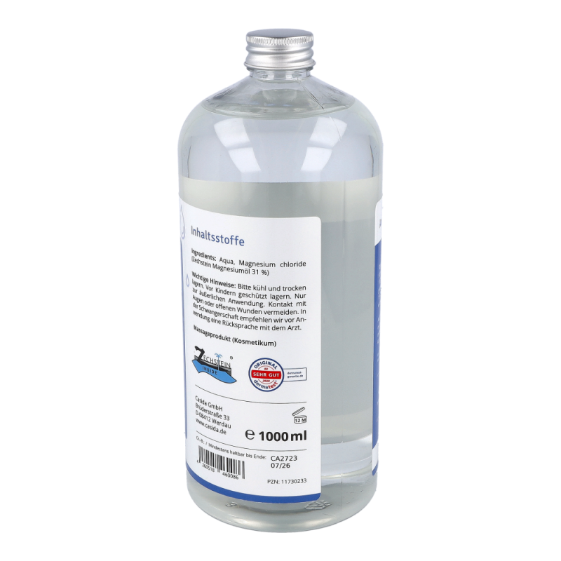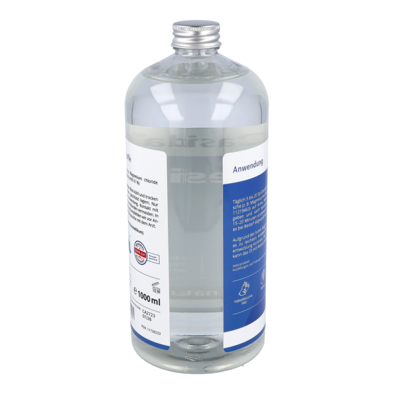 Magnesiumöl mit höchster Qualität und Reinheit. Ohne chemische Zusätze. Praktisches Auftragen direkt auf die Haut und die beanspruchte Muskulatur. Regenerierend und entspannend für Körper und Geist.