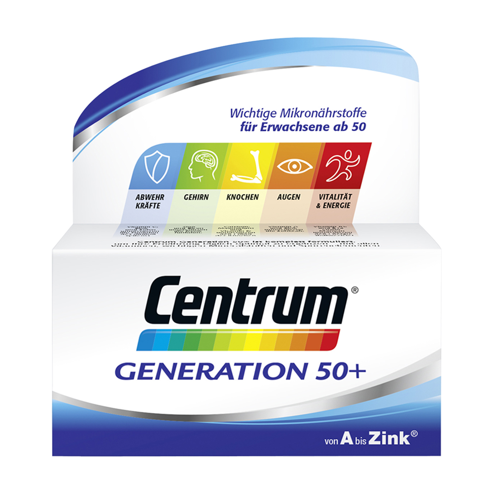 Centrum Generation 50+ Tabletten 30 Stk. enthalten sorgfältig aufeinander abgestimmte Vitamine, Mineralstoffe, Spurenelemente und das für gutes Sehen wichtige Lutein. Diese Nährstoffe unterstützen den Funktionsablauf unseres Körpers und sind lebensnotwendig. Jetzt bestellen!