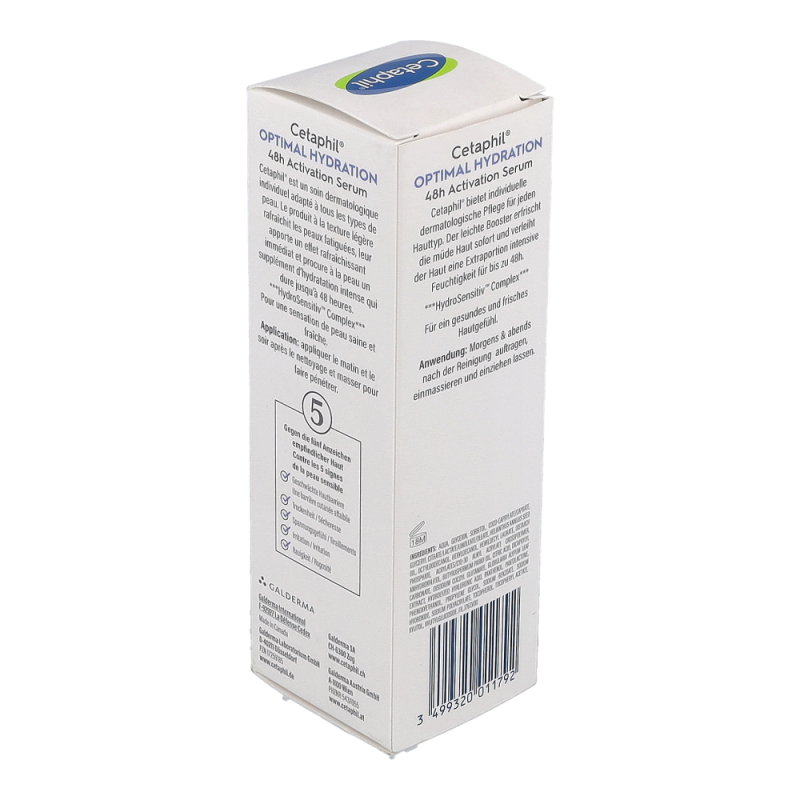 Das leichte Feuchtigkeitsserum zieht sofort ein, versorgt die Haut 48 Stunden lang intensiv mit Feuchtigkeit und verstärkt so die aktive Feuchtigkeitsversorgung. Die Hautbarriere wird gestärkt und empfindliche Haut beruhigt.